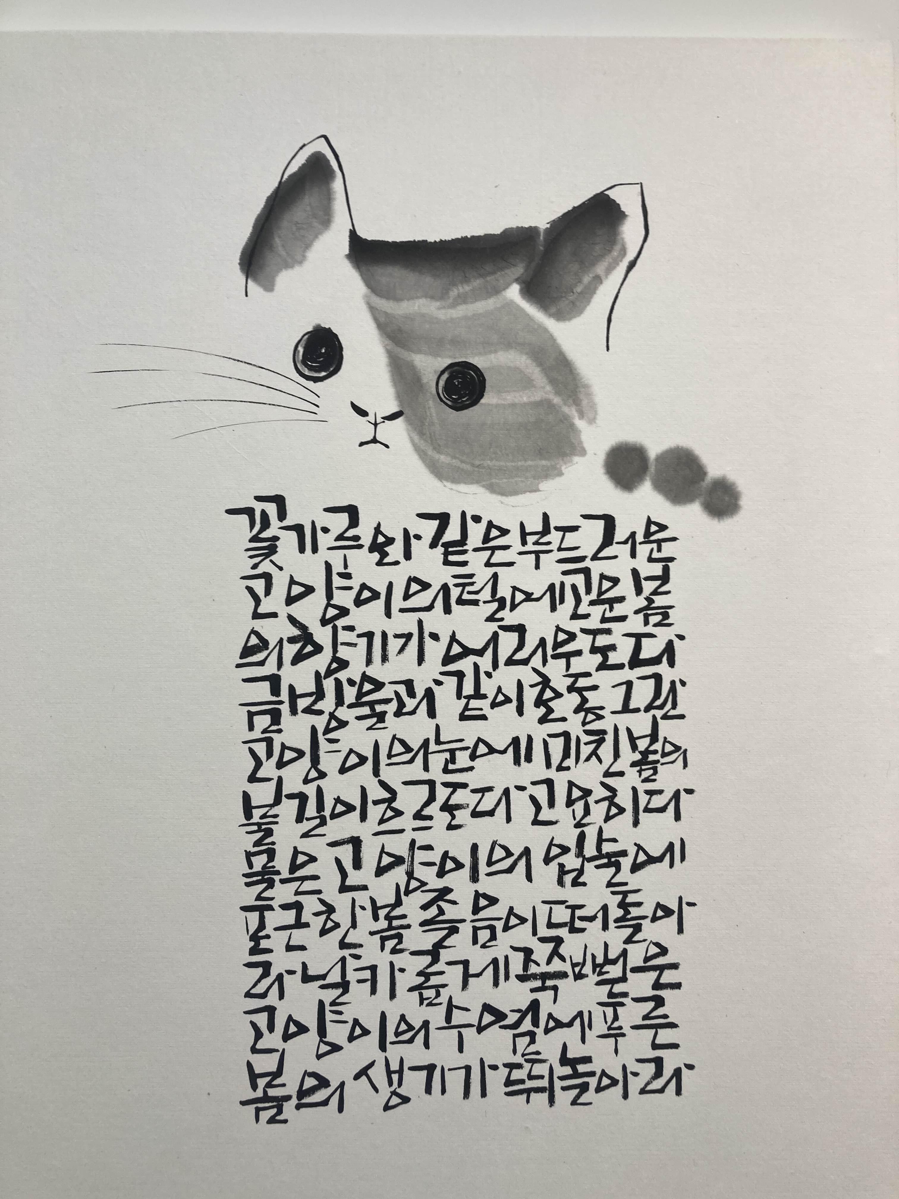 캘리 전시회를 가다가 발견한 작가님이세요. 밖에 내걸린 작품이 민화 같기도 해서 눈이 갔어요. 그래서 전시회장으로 들어가니 별세계더라고요.