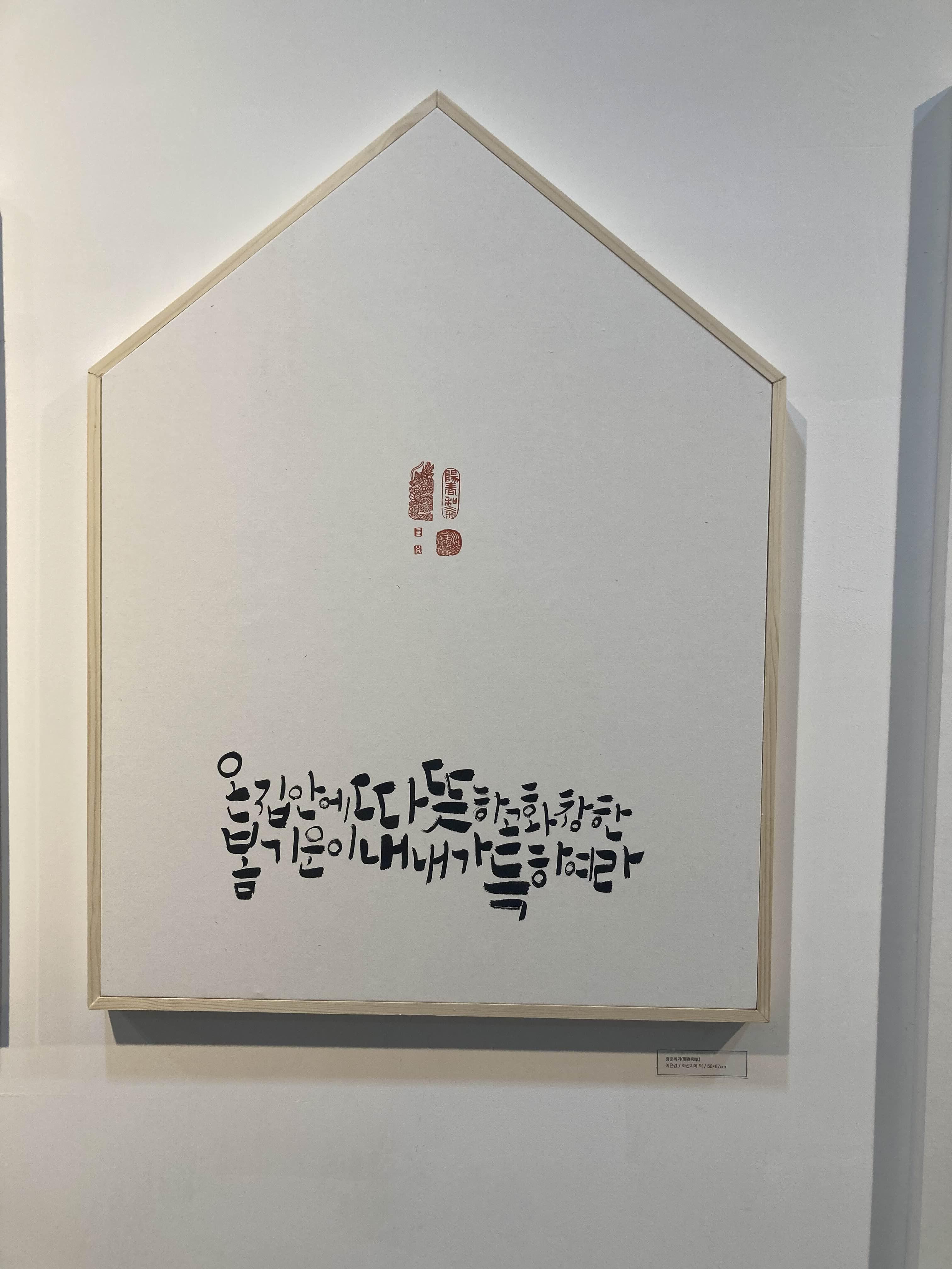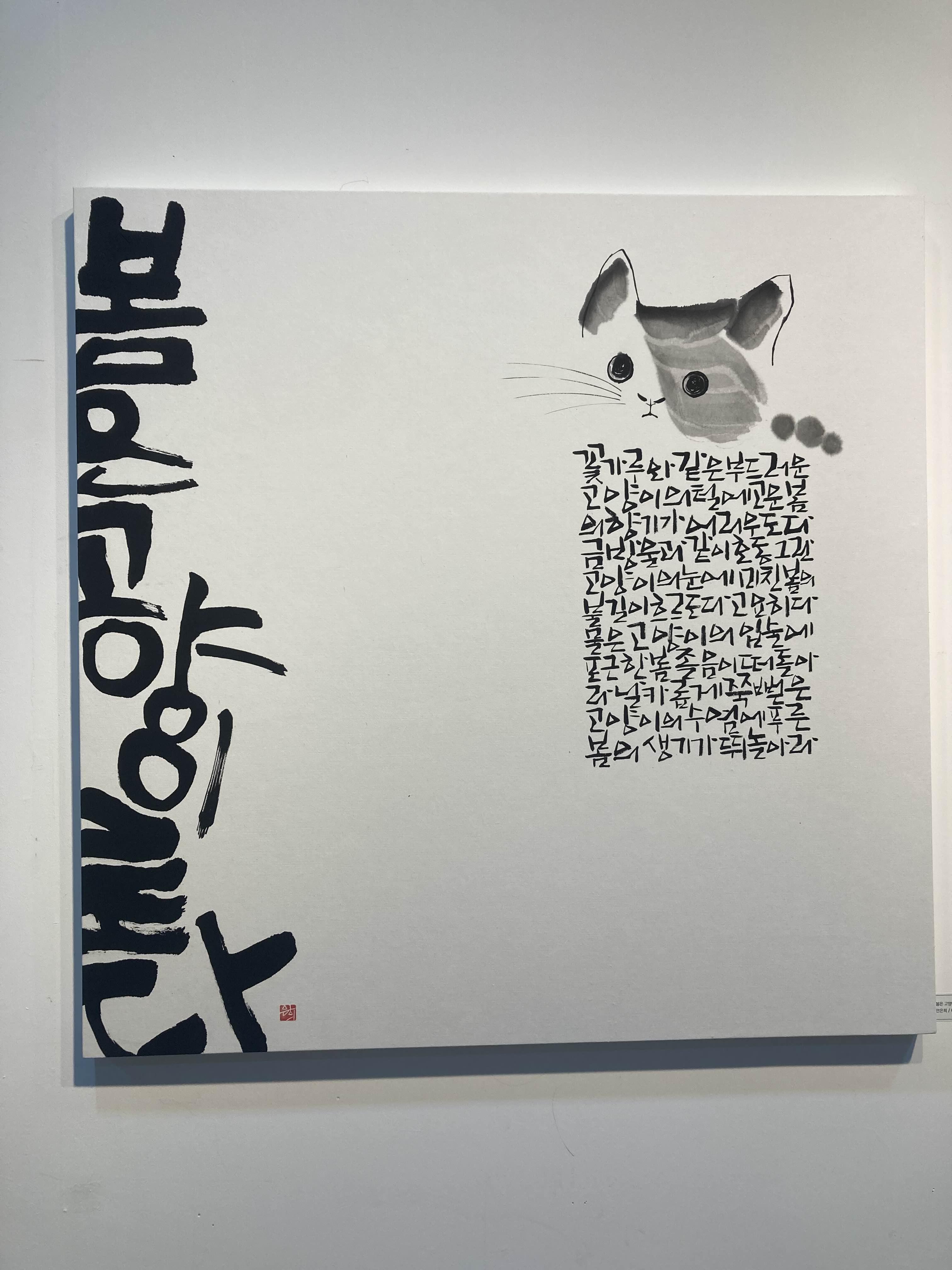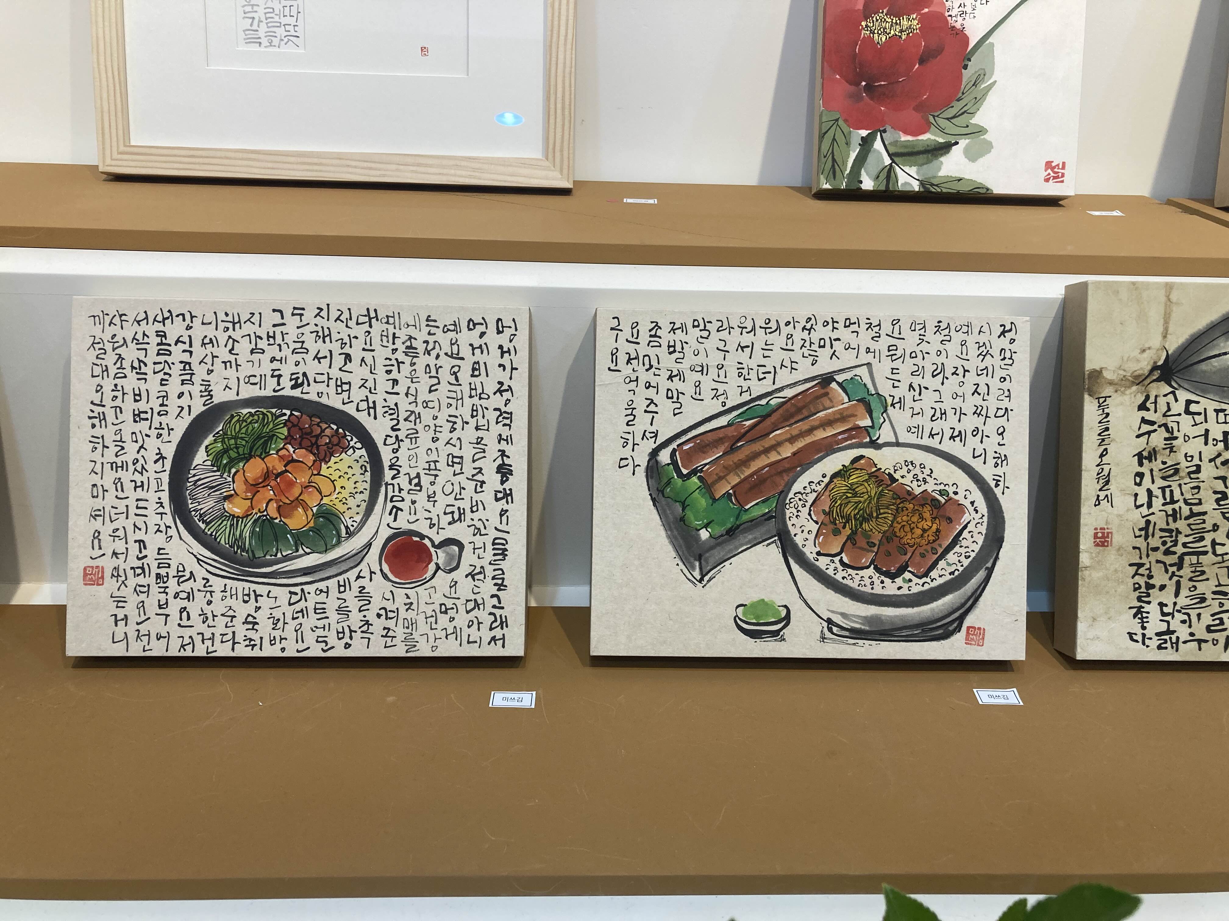 캘리 전시회를 가다가 발견한 작가님이세요. 밖에 내걸린 작품이 민화 같기도 해서 눈이 갔어요. 그래서 전시회장으로 들어가니 별세계더라고요.