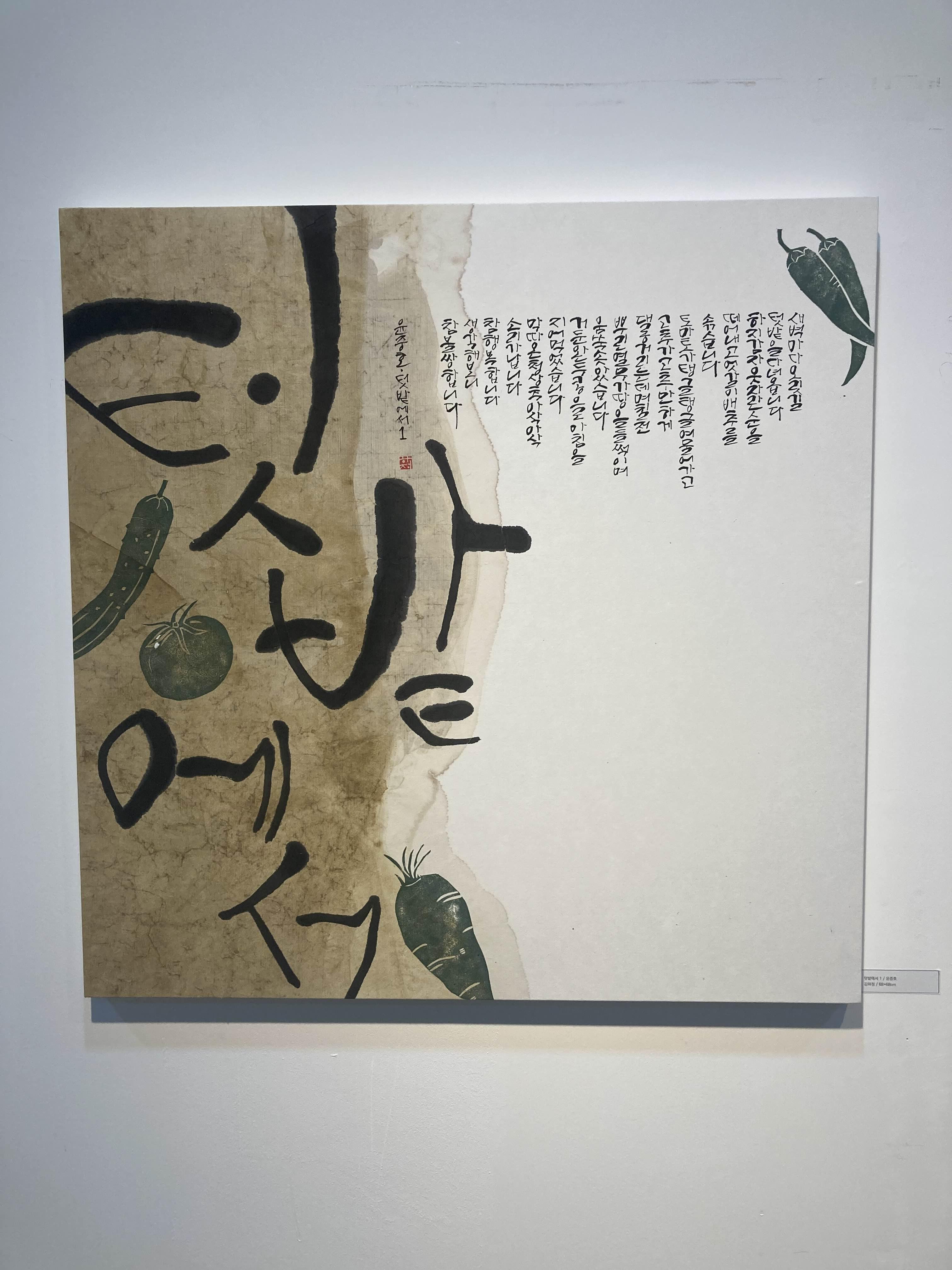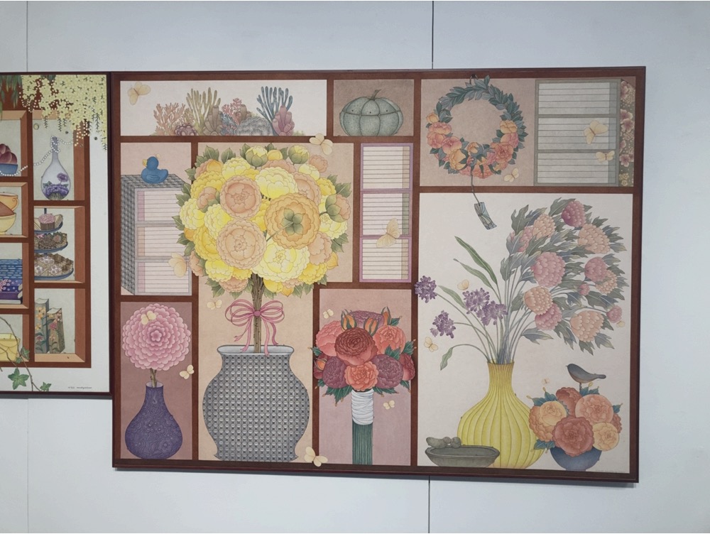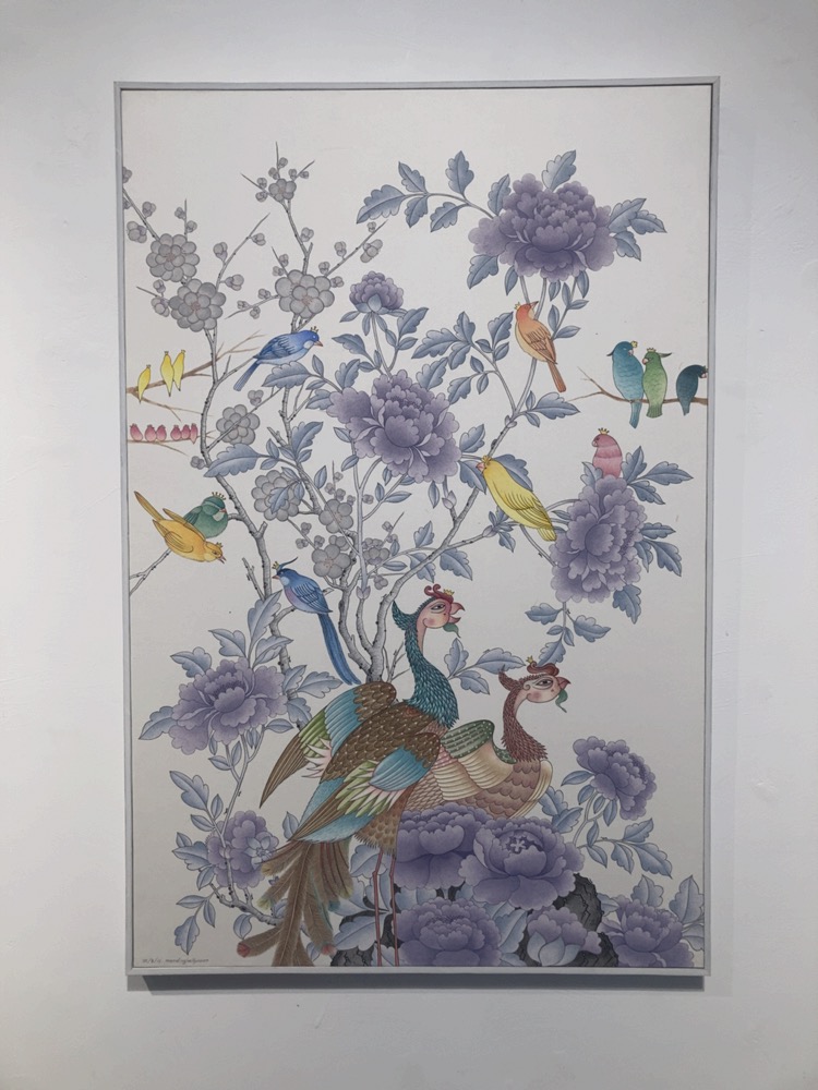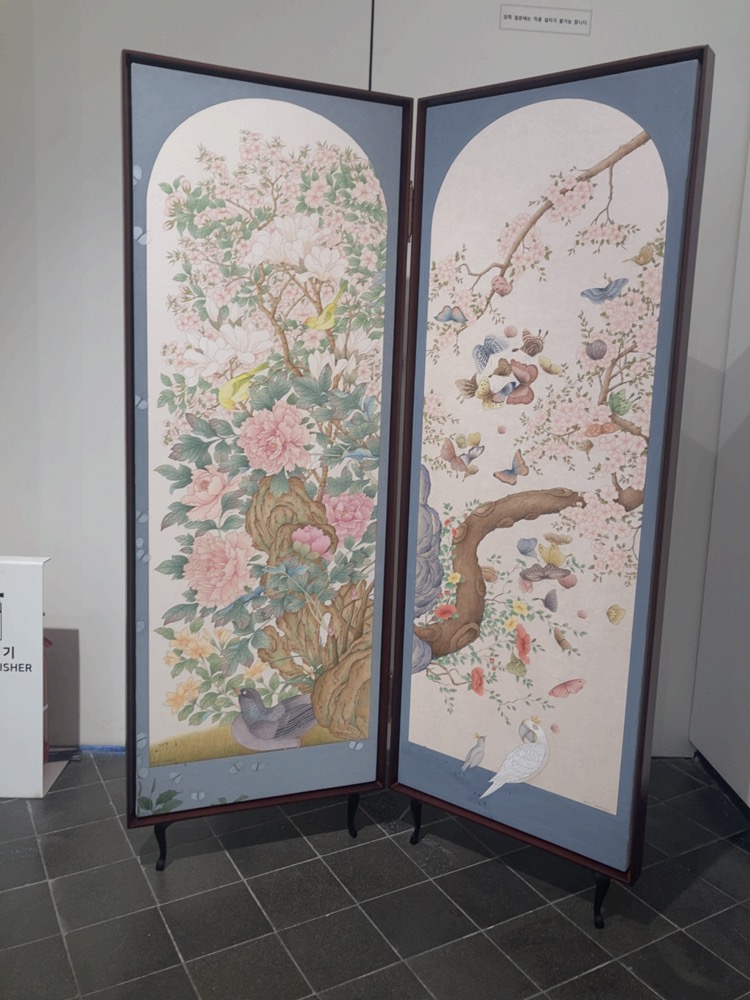 캘리 전시회를 가다가 발견한 작가님이세요. 밖에 내걸린 작품이 민화 같기도 해서 눈이 갔어요. 그래서 전시회장으로 들어가니 별세계더라고요.