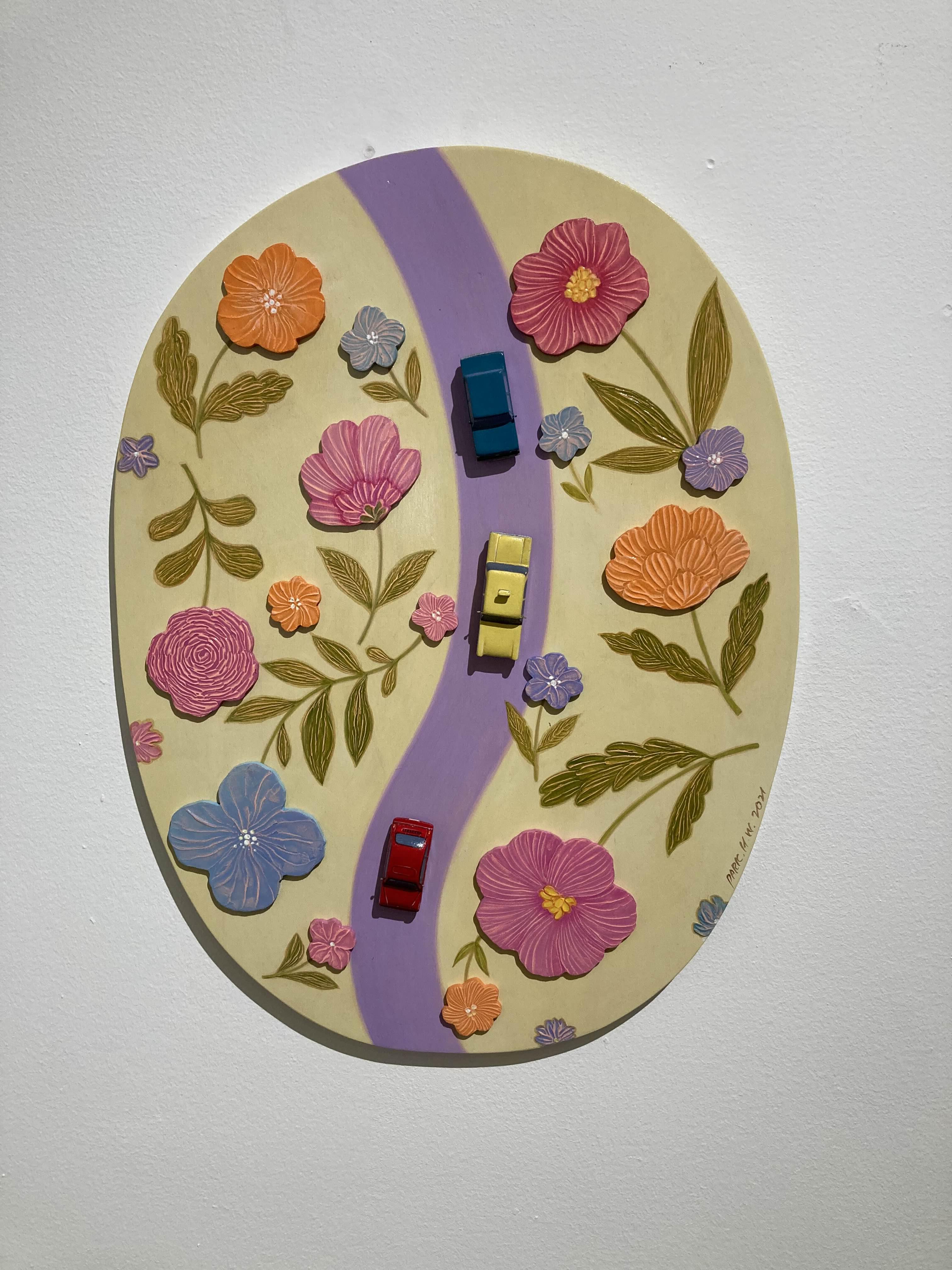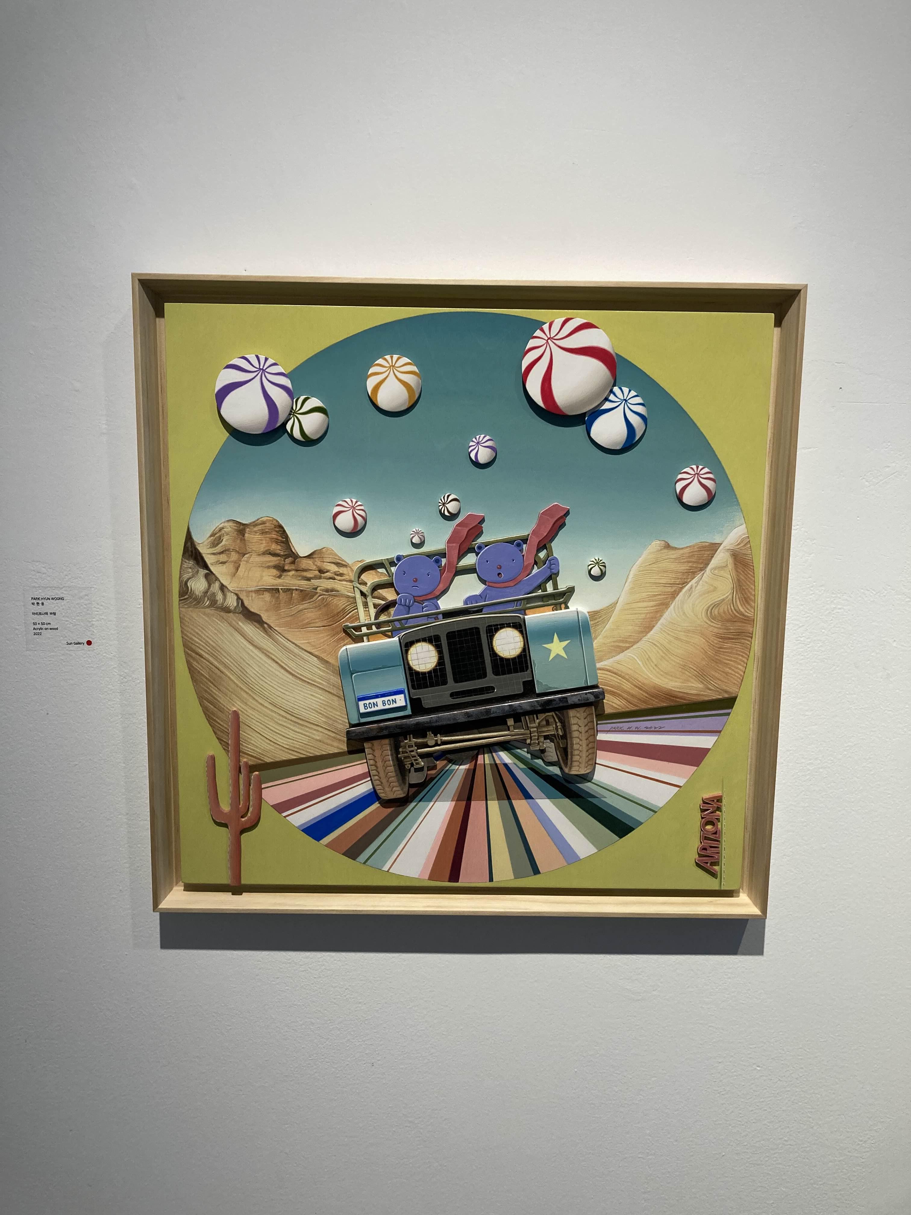 원래 시각디자인을 하셨다고해요. 그래서 디자인적인 요소나 자신만의 분위기가 강합니다. 바탕을 얇은 붓으로 여러 번을 칠해서 원하는 색감을 만드신데요. 말씀을 들으며 저는 요즘에 너무 단번에 잘하려고 하지 않았나 반성했어요. 작품에 크고 작은 위트를 넣으신 부분도 감동적이었고요. 자신만의 아이덴티티를 이미 잡아서 제대로 작품을 만드신 모습에 다시금 반했다고 할까요. ㅎㅎ 앞으로도 팬이 되어서 졸졸 따라다닐 것 같아요.
