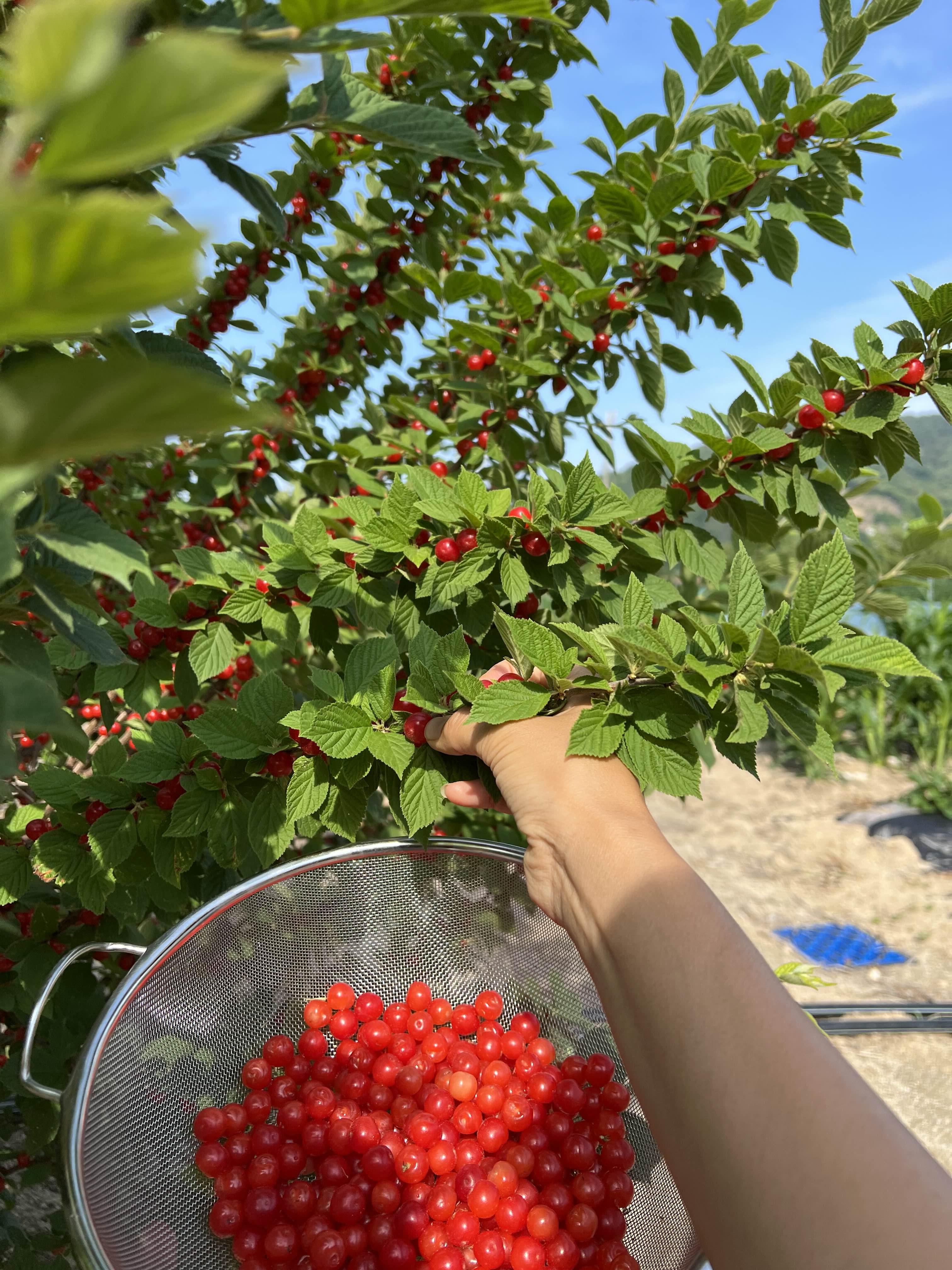 음 눈감았네요…. 여기 모든 나무들이 그렇지만, 앵두나무는 일년 사이 두배는 컸네요. 그러다보니 소출도 두배~ 열심히 땄는데도 1/5도 못따고~~~한가득 따서 앵두청과 앵두주를 담궜지요. 나머지는 저녁에 다시~~