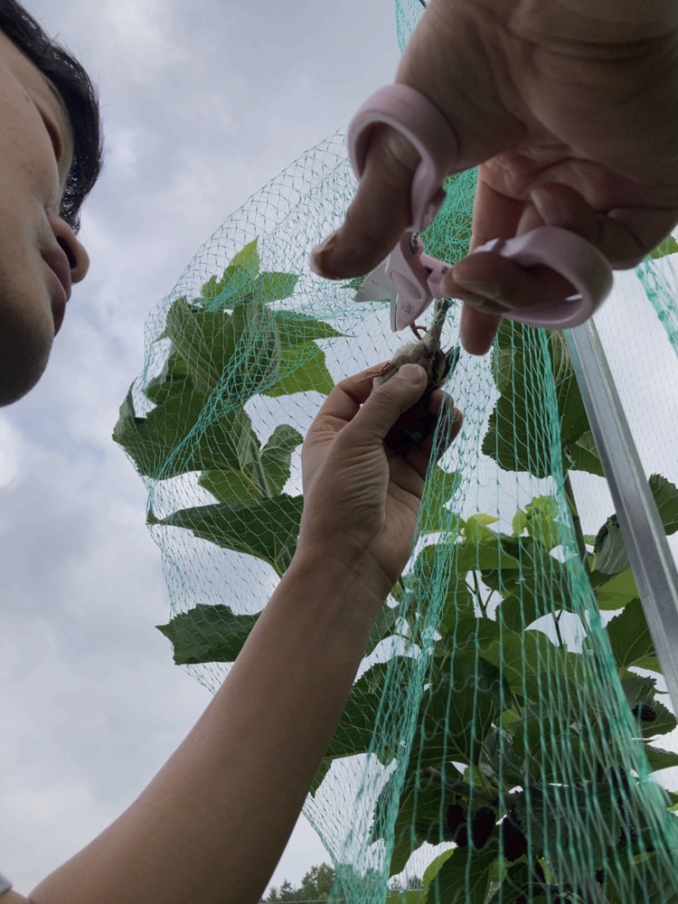 그리고 겸사겸사 이번주엔 새망을 복분자로 옮겨주었어요. 새망을 설치해서 그런지, 제법 소출이 있어서 오디는 자연과 나눠먹기로 했네요. 일부 따서 뒷집 옆집에도 나눠드렸는데, 오디쨈으로도 만들어 드셨데요. 오호. 다음 주에 가면 좀 더 따서 잼으로 만들어야겠네요.