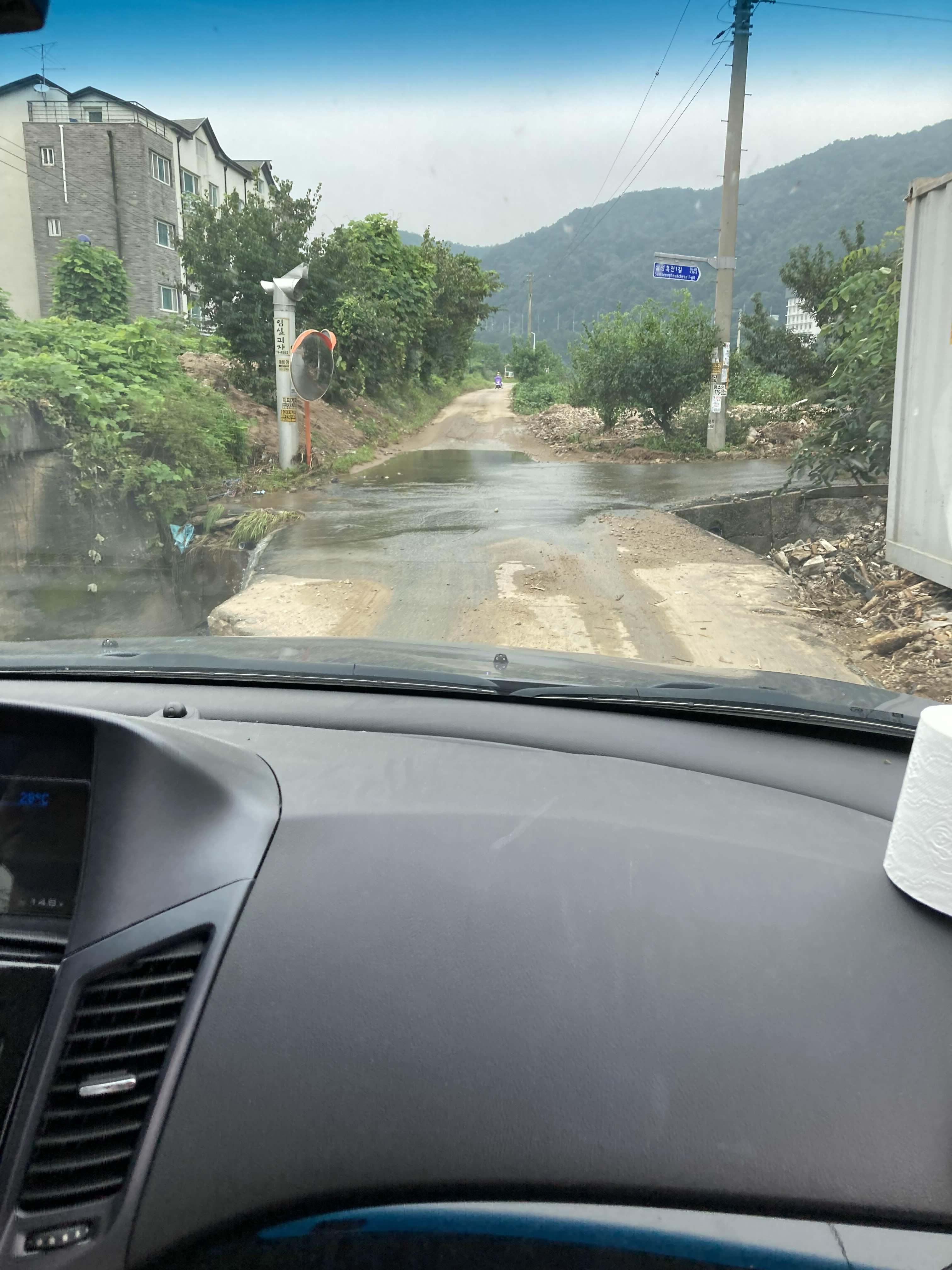 정화조의 고장만 부분은 다음 날 아침 (남편이) 부품 사다 고쳤고요. 차 타고 다녀보니 최근 공사한 도로가 바닥이 꺼지고 물에 흙이 휩쓸려오고 그렇네요.