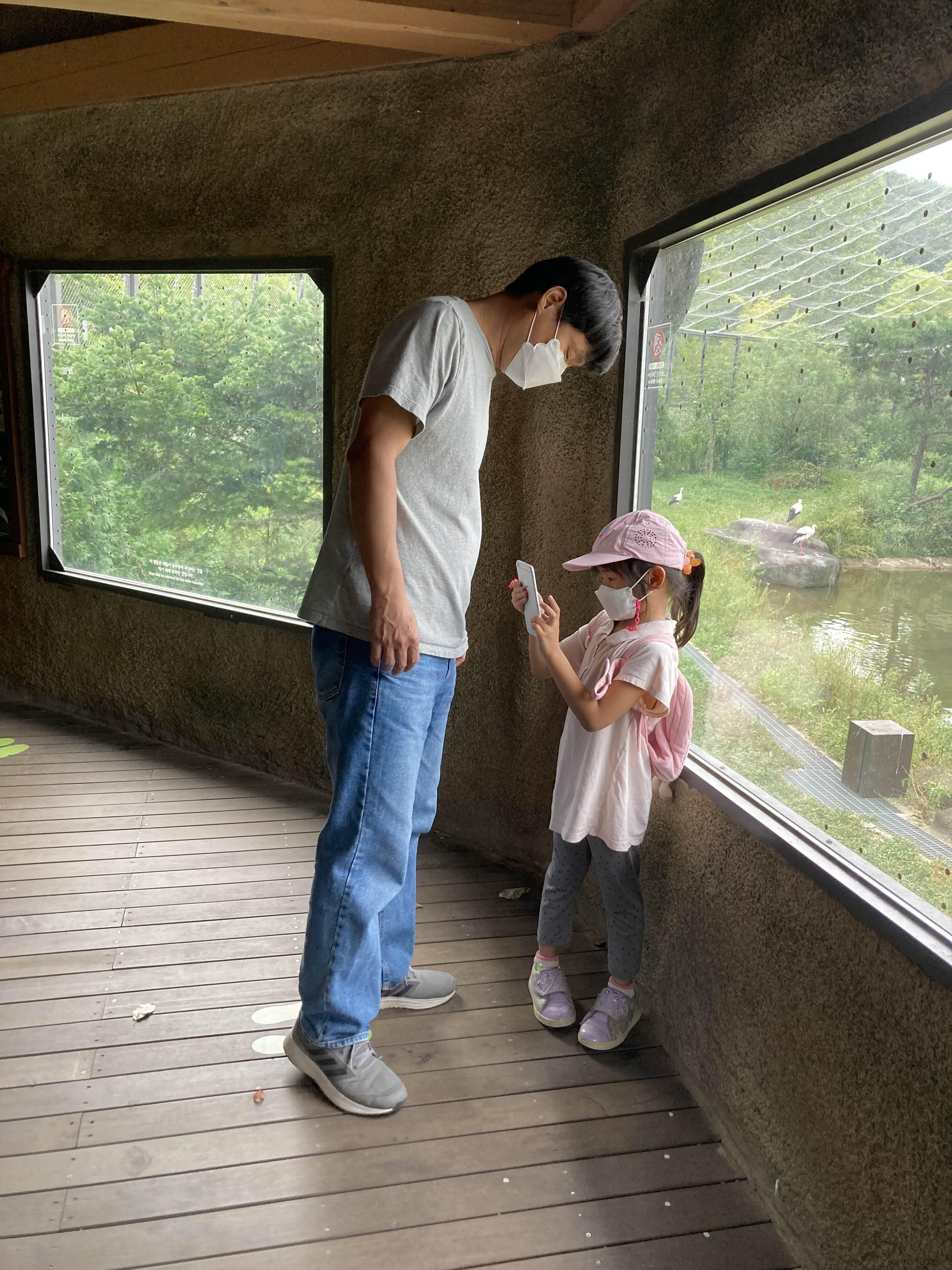 빨리 둘러보고 싶어하는 둘째와는 다르게 '관찰 숙제'를 해야 하는 첫째는 열심히 관찰하고 표지판 설명도 읽고 즐거웠나 보드라고요. 물론 저도 엄청 좋은 시간이었고요. 앵무새가 이렇게 예쁜지, 호랑이가 이렇게 멋있는지에 대해 머릿속으로 업데이트하고 나왔어요. 앞으로 민화로 그려낼 때 동물들을 좀 더 사랑하게 될 것 같아요. 저도 그런데 아이들도 그럴 것 같아요. 교실수업도 좋지만 역시나 현장학습을 통해 여러 가지 더 많은 것들을 배우게 되지요.