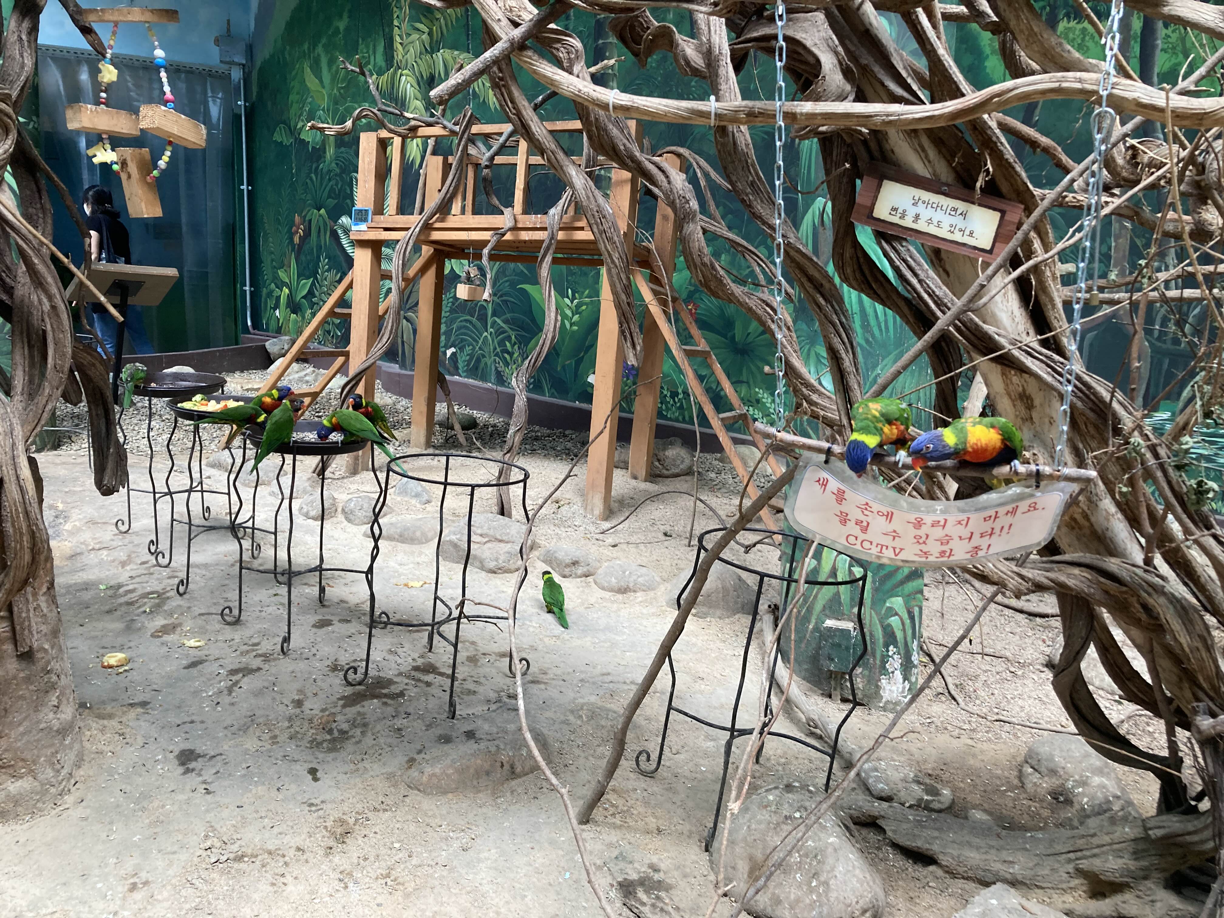 예전엔 '앵무새구나~'라고 지났쳤었는데, 나이가 먹어 색색이 형형한 게 좋아서 그런지 너무 예쁘더라고요. 크고 고운 색을 보여주는 앵무새들을 언젠가 그림으로 표현해야지~라고 다짐만 하고 나왔습니다. 더 보고 싶은데, 둘째가 엄마 가자며 질질 질 끌고 나왔어요.....