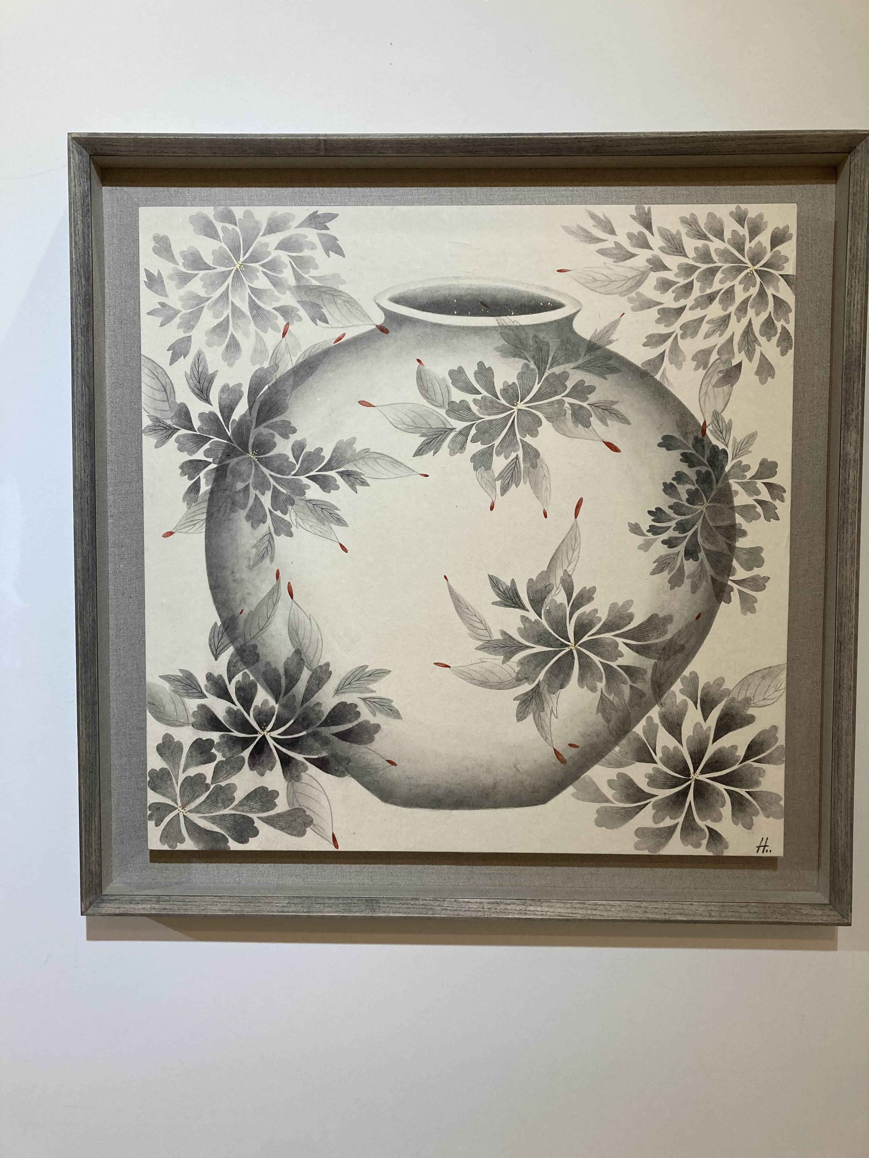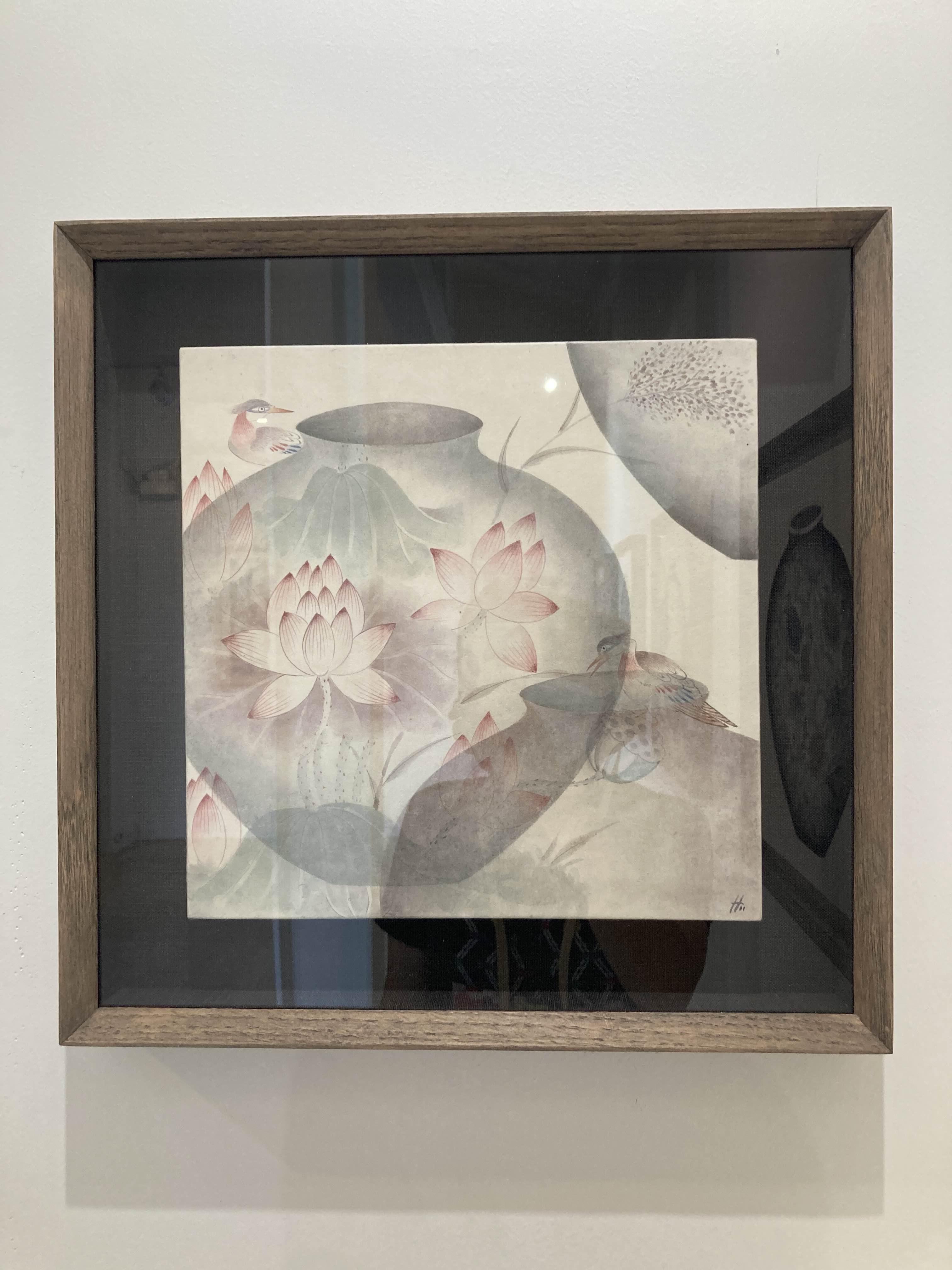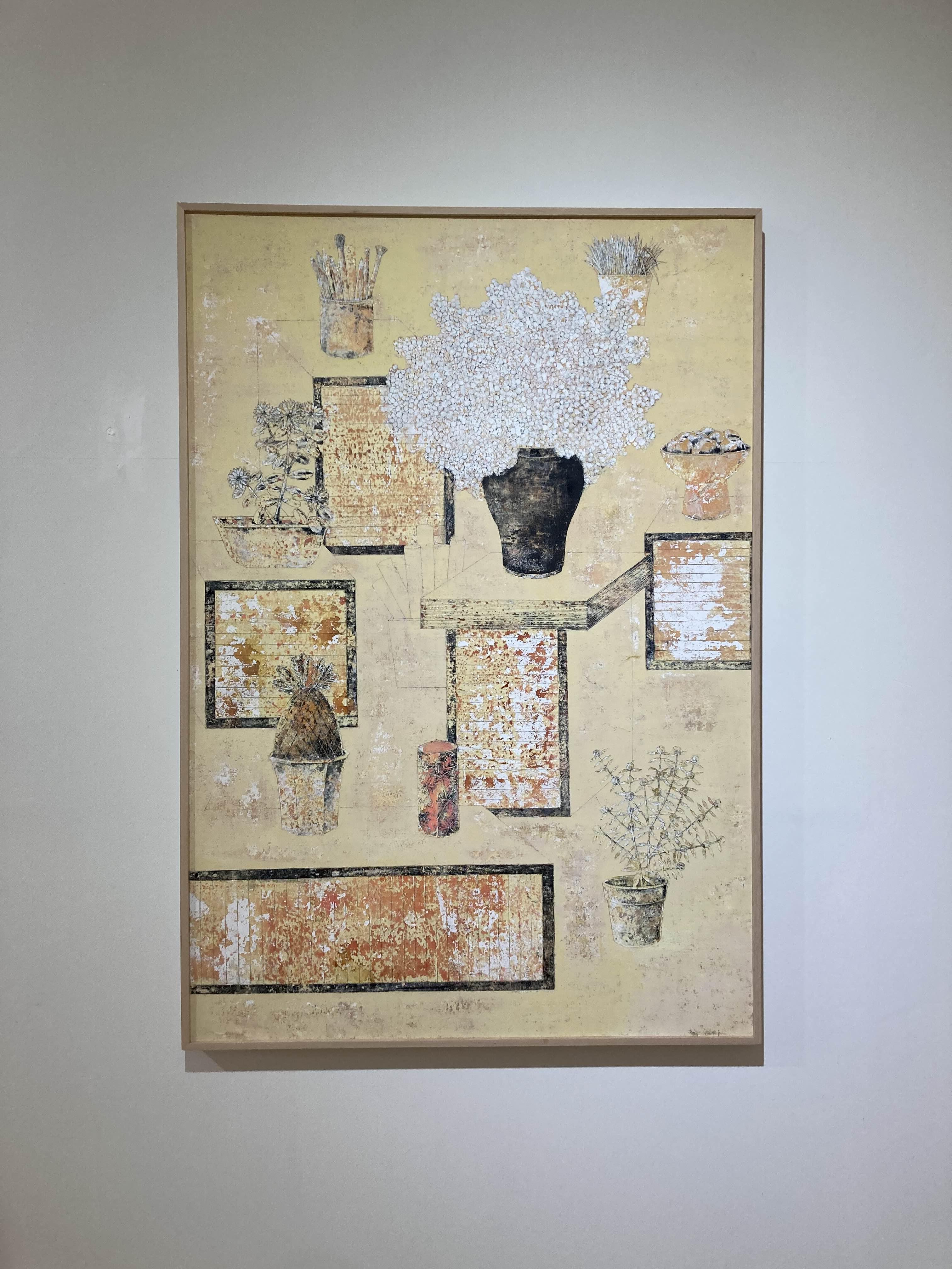 작가 분들이 다들 반짝이라던가 자개 같은 재료를 섞어 쓰기도 하셔서 실물로 보는 느낌이 많이 달랐습니다. 올려두신 인스타 사진에서는 마냥 단정한 그림인데, 실제로 보니 활기차고 역동적이다는 생각도 들더라고요. 보는 각도에 따라 빛이 반짝거린다던가 하는 모습에서요. 달항아리도 윗부분이 반짝거리니 달빛에 반사하는 물의 느낌도 나고요. 왜 이 네 분을 같이 전시하나 했더니, 다소 혁명적인(?)이고 모던한 느낌과 뒤섞여서 지금의 흐름이라던가 요구사항에 맞춰 각각의 개성이 갖춘 작가분들이라 그러가 봅니다.