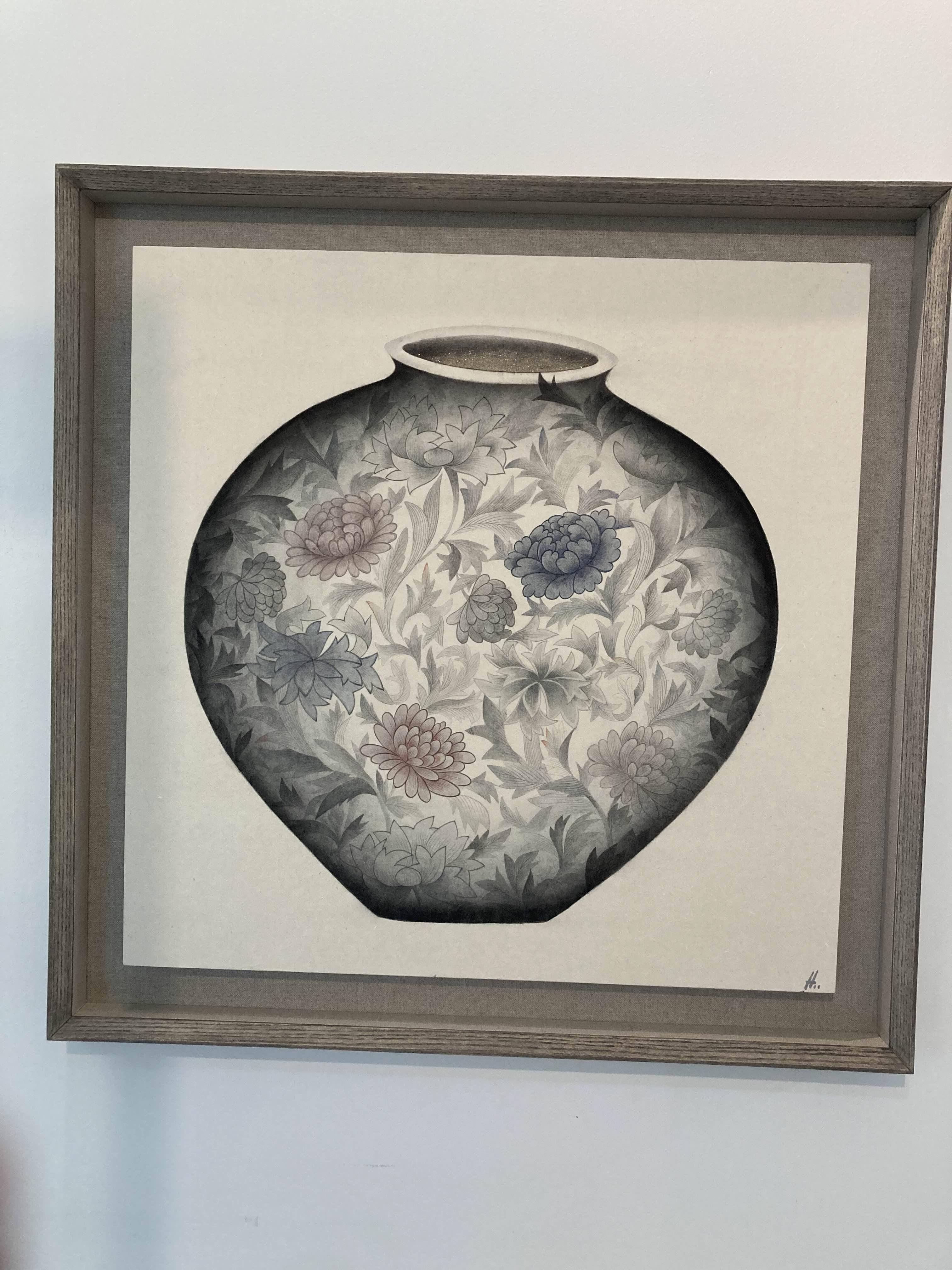 작가 분들이 다들 반짝이라던가 자개 같은 재료를 섞어 쓰기도 하셔서 실물로 보는 느낌이 많이 달랐습니다. 올려두신 인스타 사진에서는 마냥 단정한 그림인데, 실제로 보니 활기차고 역동적이다는 생각도 들더라고요. 보는 각도에 따라 빛이 반짝거린다던가 하는 모습에서요. 달항아리도 윗부분이 반짝거리니 달빛에 반사하는 물의 느낌도 나고요. 왜 이 네 분을 같이 전시하나 했더니, 다소 혁명적인(?)이고 모던한 느낌과 뒤섞여서 지금의 흐름이라던가 요구사항에 맞춰 각각의 개성이 갖춘 작가분들이라 그러가 봅니다.