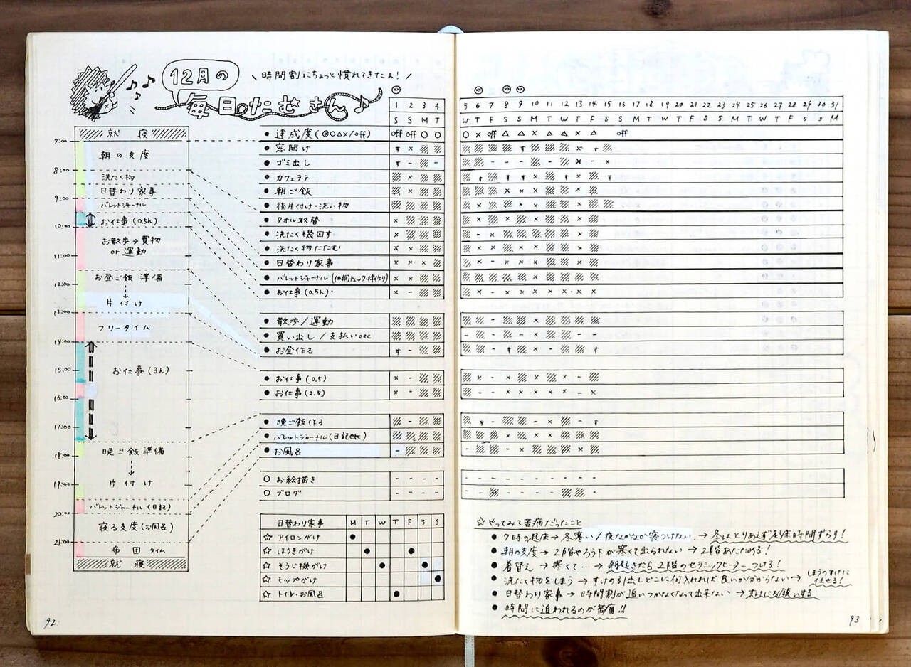그러던 차에 발견한 템플릿을 하나 발견해서 응용하기로 했어요. 오 마침 이 달도 12월. 일본 분의 정리인데, 아 이거다 싶더라고요. 저는 원래 아침습과, 점심, 저녁, 올데이 습관으로 분류했는데, 이것도 모호하더라고요.