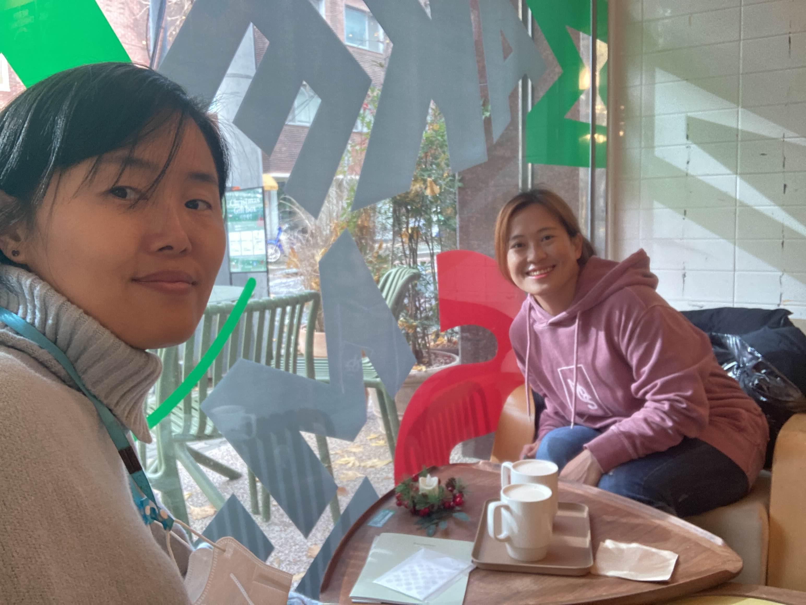 구입한 제품들을 늘여놓고, 밀크티를 마시며 수다를 떨었습니다. 만. 급 윗층의 공사 소리 때문에 밖으로 나왔네요. 다른 분들도 나가시더라고요. 밀크티 맛있었는데 아쉽.