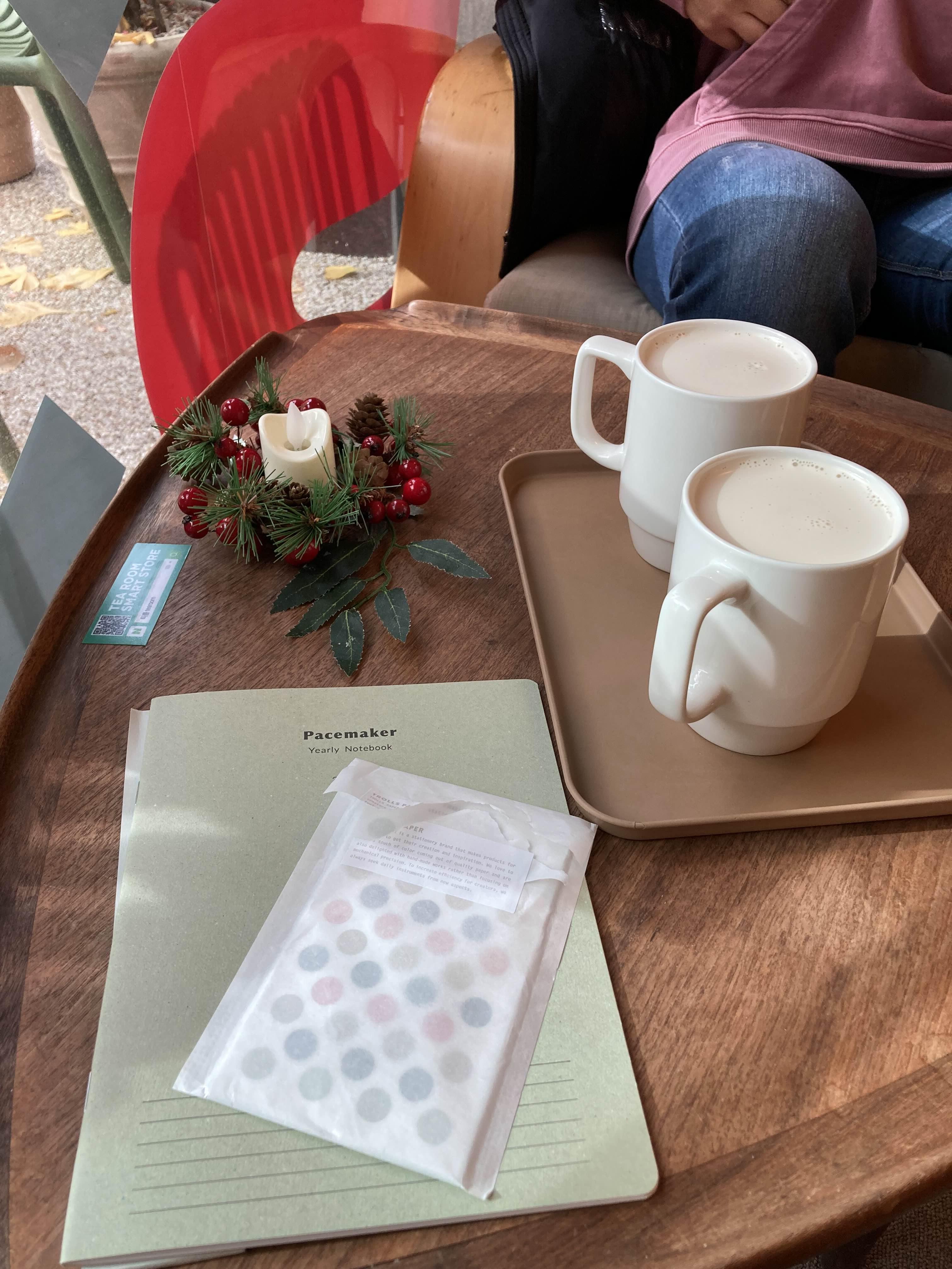 3층에 달하는 point of view에 왔습니다. 오 안에도 사람이 많고 외국인들도 투어로 많이 왔더라고요. 안에 사람이 바글바글하기 직전! 볼거리는 많았는데, 딱히 사야겠다 생각이 드는 제품은 많지 않았어요. 핫트랙스에서 보던 상품들도 많았고요. 일단 사람들이 많아서 자세히 보기가 어려운 부분도 있었네요. 작은 집게 3개만 샀어요. 그리고 외국제품들이 많아서 가격이 저렴하진 않습니달~ 3층에 크리스마스 오브젝트들을 판매하고 있었는데 하나에 3~4만 원가량, 후들후들 가까이 가지 못하고. 외부는 시꺼멓지만 내부는 나무 문과 유리로 인테리어가 되어 있어서 포근함으로 가게를 감싸네~ 유후~ 참, 그리고 계단 복도에 스탬프를 찍을 수 있게 비치해둬서 오늘 산 노트에 도장을 찍어주었습니다. 아주 잘 어울려~