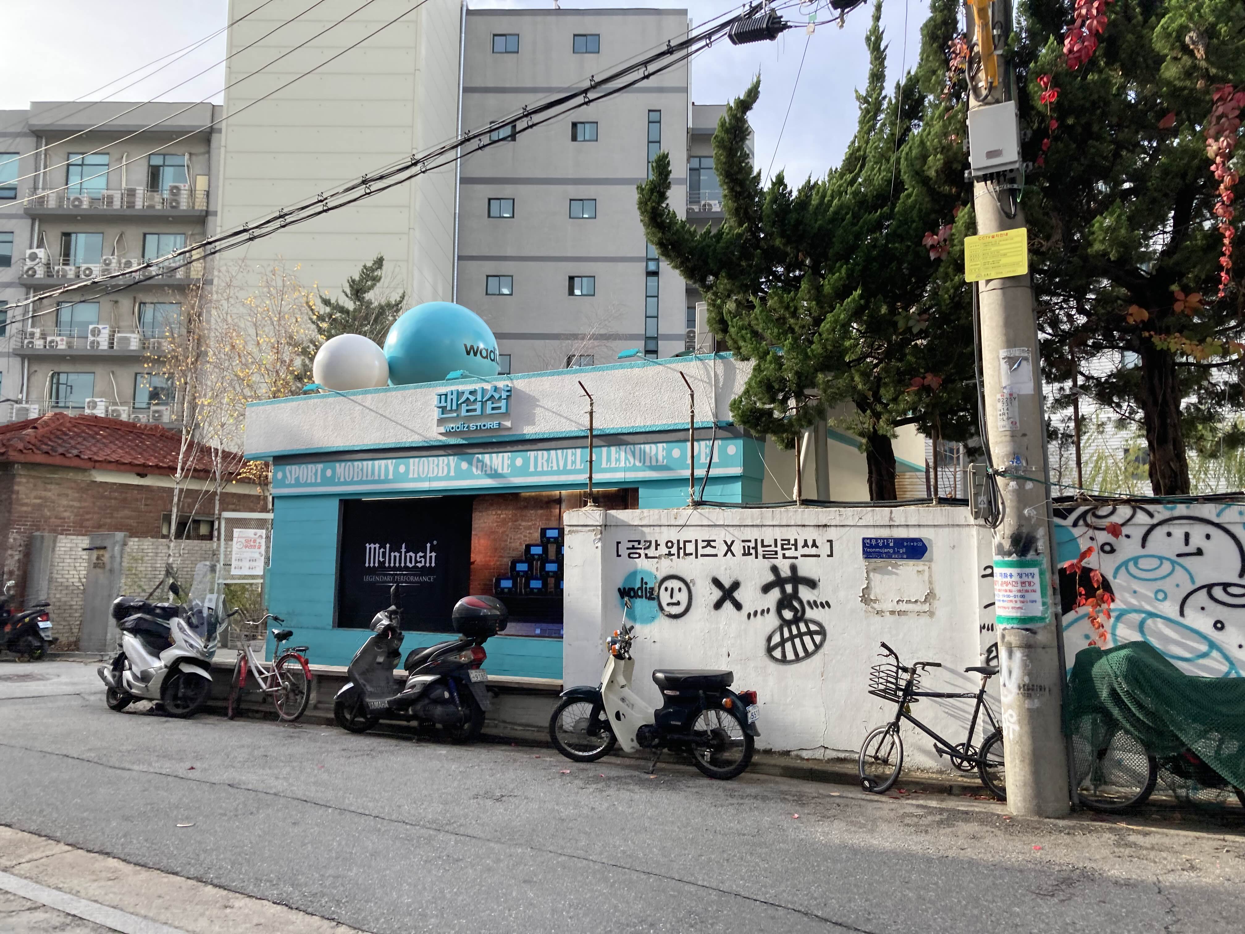 팬 집 샵이라고 적혀있는데, 음 그냥 와디즈 물건들 전시장이라고 보시면 됩니다. 허허허 1층은 펀딩 전의 상품들, 2층은 펀딩 된 직구매되는 상품 들고 구성되어 있어요. 다양한 상품들이 있는데, 그게 장점이자 단점이라고 생각이 들더라고요. 공간 구성을 좀 바꾸면 어떨까 싶어요. 하나하나 제품들이 늘어져만 있고 각 제품의 장점을 강조하는 인테리어 구성이 필요하다 싶습니다. 계단에서 화장실 냄새가 나서 그것도 불쾌했고요. 2층에 향수들이 많았는데, 혹하는 제품들이 많아 그건 좋았습니다. 제품에 대한 호감도에 따라 호불호가 매우 갈릴 장소 같네요.