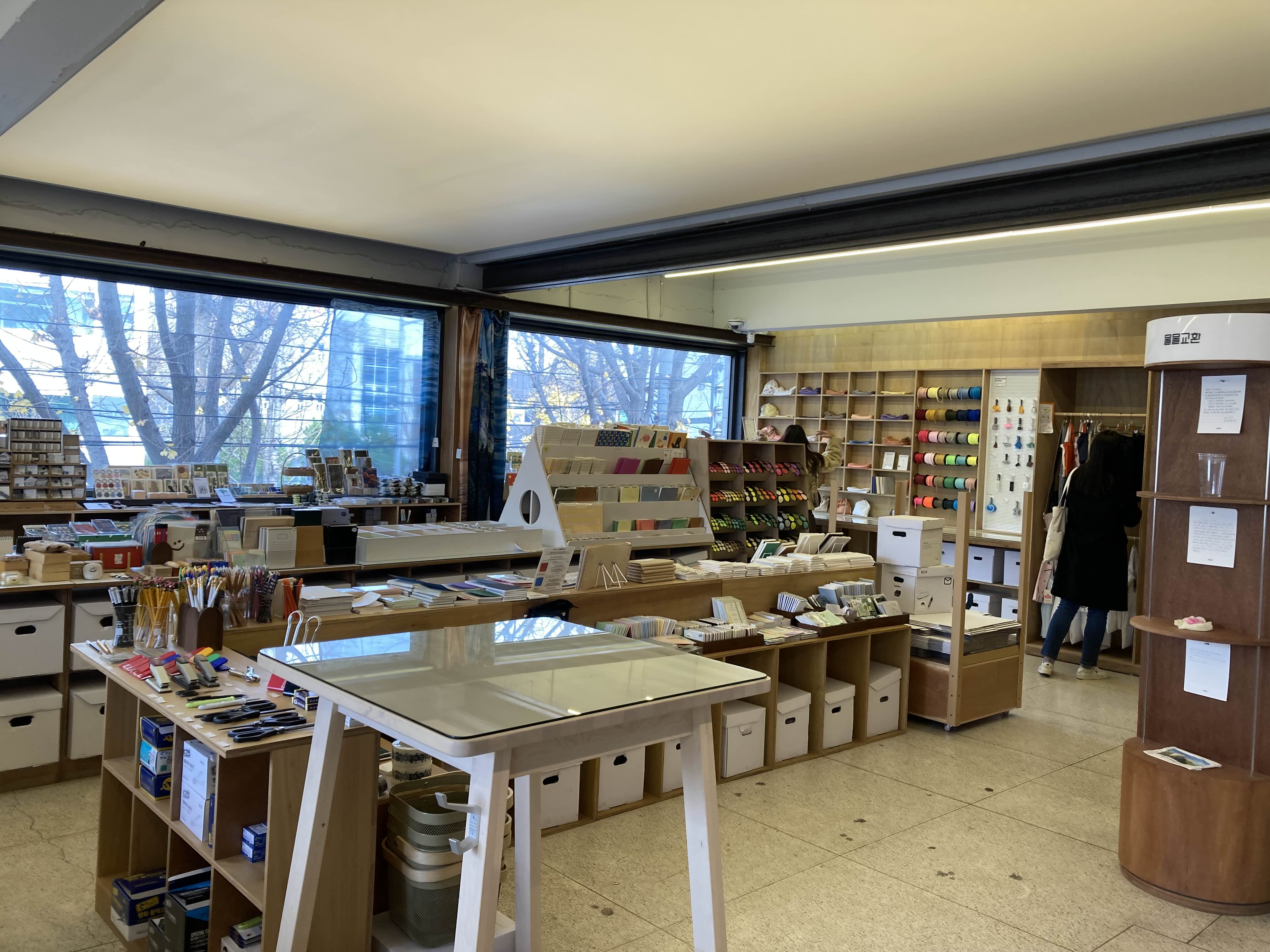 사진에서 보기엔 작아보이는데 들어가 보면 좀 넓고요. 국내 제품들이 많아서 좋았어요. 노트와 다이어리들이 깔끔한 걸 추구하는지 그런 스타일이 많아서 만족스러웠고요. 간편 다이어리 하나와 도띵스티커 세트 하나 그리고 마스킹 테이프 하나를 샀네요. 생각보다 매우 좋아서 친구와 오래 머물며 하나하나 들여다보고 왔어요. 모나미에서도 있지만 여기에서도 모나미 볼펜을 DIY 자기 스타일로 조립할 수 있고요. 노트나 주머니도 각자 취향에 맞게 만들 수 있습니다. 이런 부분이 조금 더 확대되면 좋겠다 싶었어요.