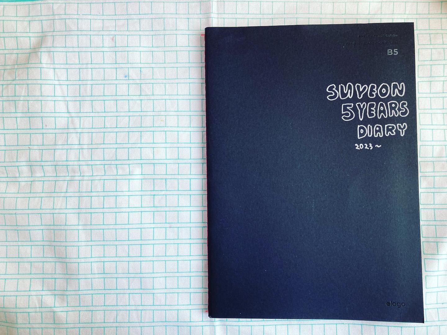 다이어리에 한 줄 일기를 적는데, 이게 한 권으로 쌓이면 좋겠다 생각이 들어서 5년 다이어리를 알아보았어요. 흡족한 게 없어서 고민을 하다 가지고 있던 노트 한 권을 꺼내 바로 만들었어요. elago에서 나온 노트인데, 표지가 두꺼운 편이고 가벼우면서도 줄이 많아 쓸 곳이 많아요. 그리고 페이지수도 많은 편이라 어림잡아 5년은 쓸 수 있겠더라고요.