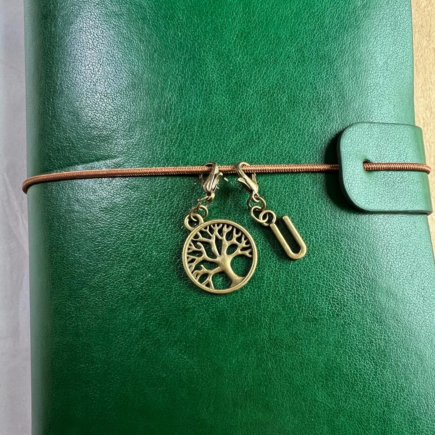 홀더장식은 따로 두 개 구매했어요. 그린 가죽을 고르다보니까 맞춰서 나무(세계수) 모양에 유천의 u 이니셜을 샀지요. 사진에 제대로 담기지 않았는데, 저리 광택 있는 건 아니고 반광택느낌입니다. 딱 제가 좋아하는 광택느낌이라 만족스러워요. 색상도 그리 비비드컬러 같은 게 아니라 가죽느낌의 적당한 채도느낌입니다. ㅎㅎ