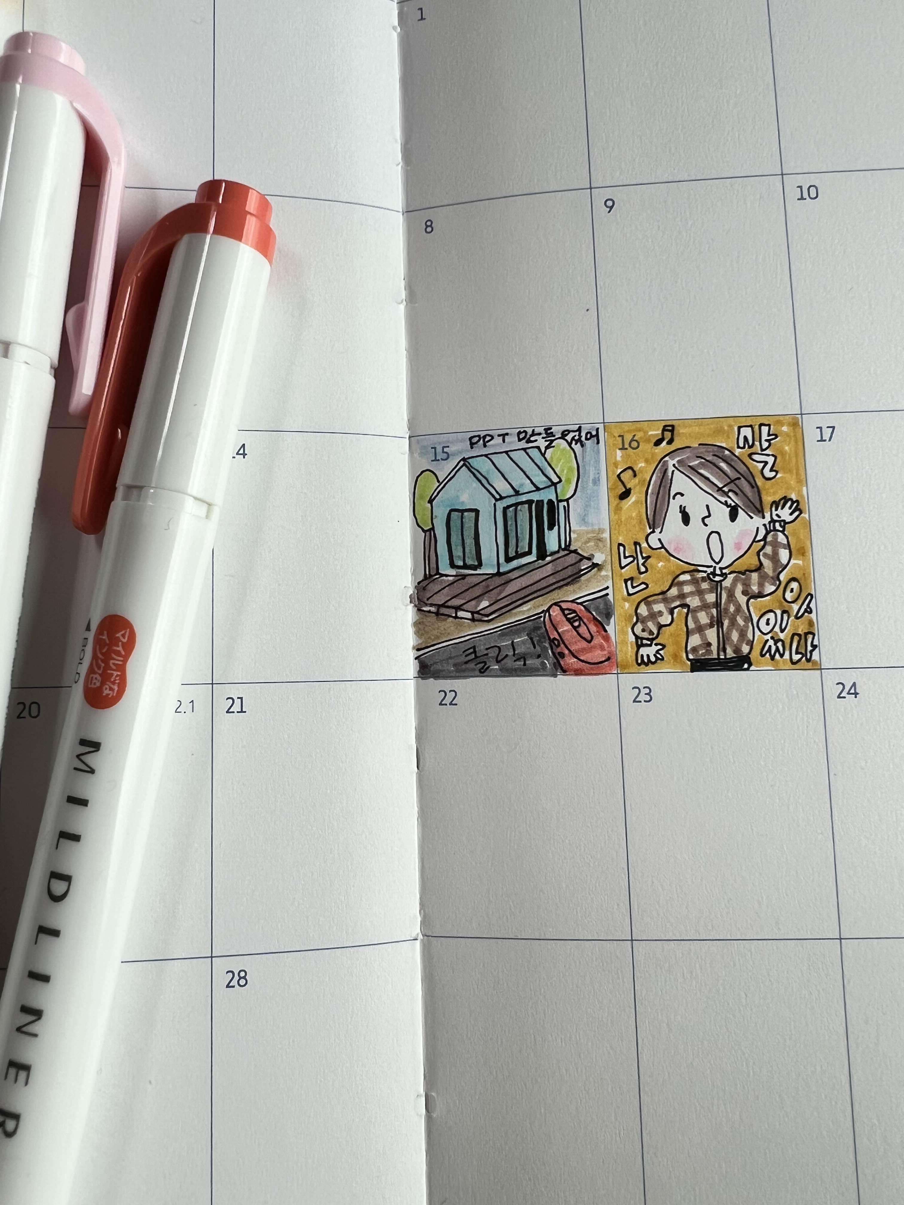 2024년도에 쓰기에는 날짜가 박힌 녀석들이라, 고민하다가 노트종이 테스트도 할 겸, 2022년 12월 부분에 제 생일 날짜에 그림을 그리고 형관펜으로 채색을 해주었어요. 괜찮더라고요. 그래서 어떻게 쓸지 결정 했지요.