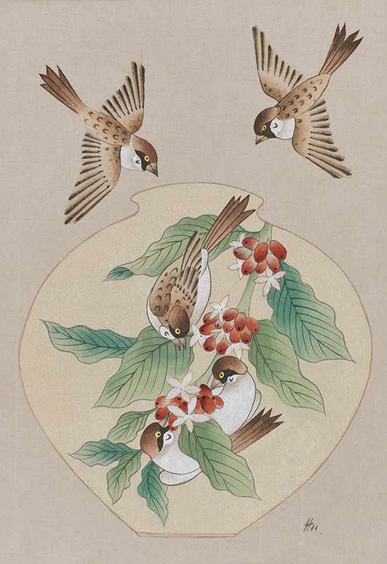 민화 종류 참새의 역할 및 의미 호작도 (虎鵲圖) 호랑이와 참새(또는 까치)를 함께 그려 강인함+기쁨을 동시에 표현. 화조도 (花鳥圖) 꽃과 함께 그려져 자연의 조화, 일상 속 기쁨을 상징. 부귀화 (富貴畵) 부귀, 장수를 기원하는 그림에서 참새가 복의 전달자로 등장하기도 함.