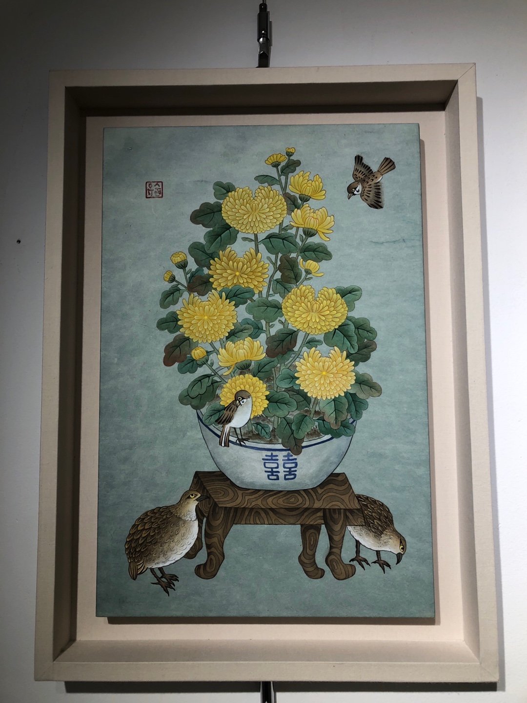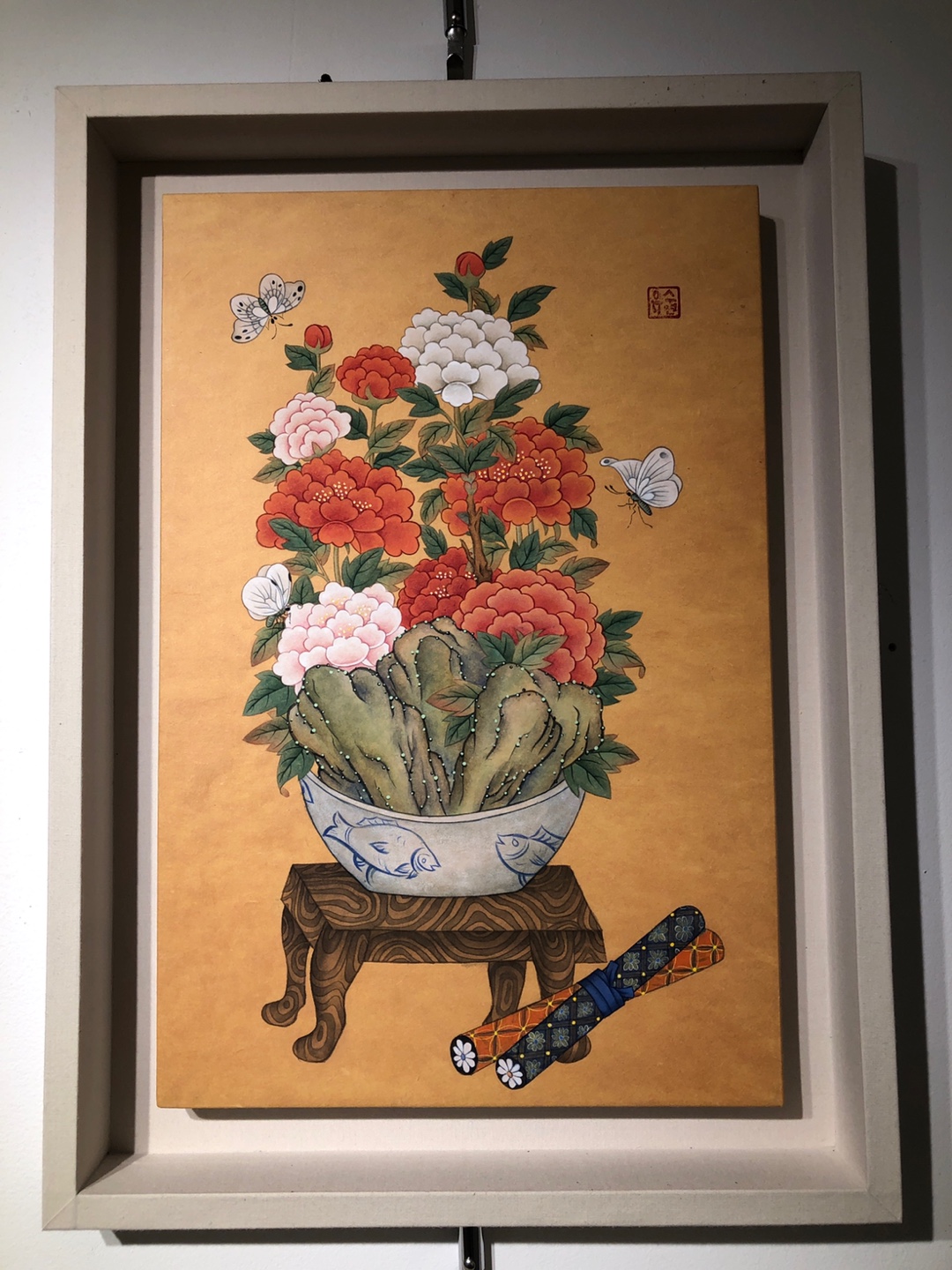 사진은 친구가 찍어 준 거예요. 민화로는 첫 전시회인데, 다행히 단체전인지라 저는 편하데 전시했어요. 운영진분들의 노고가 참 크셨고요. 개인전 하시는 분들 참 대단하십니다.