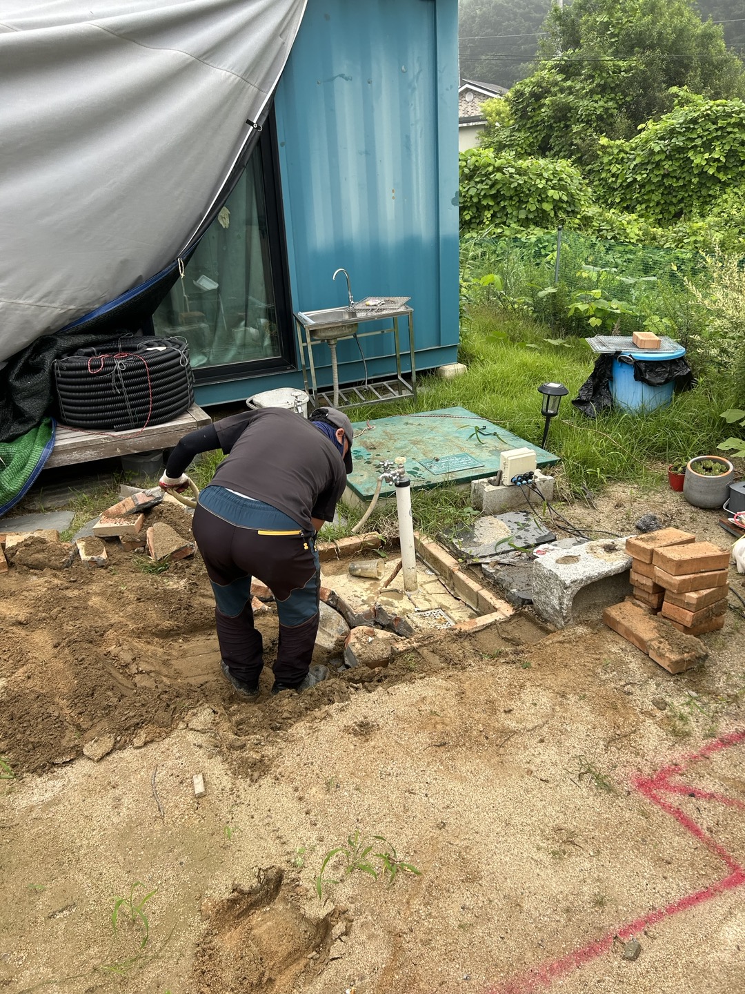 저희 옆옆땅이 축대에 기초에 소형주택까지 짓고 있어요. 그런데 쥔장이 안 오니 아주 엉망이더라고 여. 한 번은 축대가 무너졌잖아요. ㄷㄷ 원래도 공사하면 연차 내고 갔는데, 지금은 눈에 불을 켜고 지켜보나 봅니다. 허허 더운 날 다들 고생이네요.