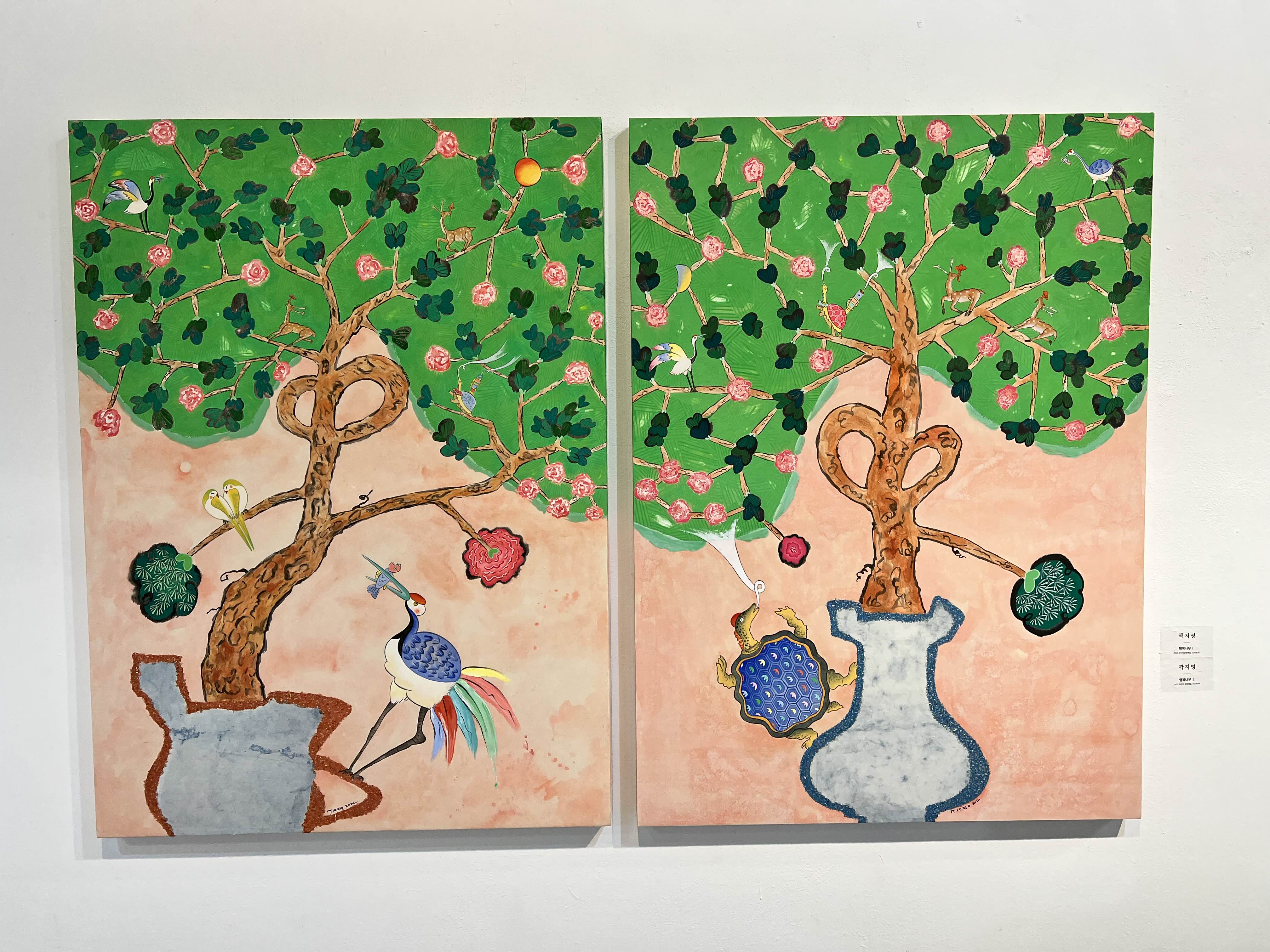 장소는 동덕여대전시관이고요. 장생도라는 주제로 여러 작가님들의 작품들이 있습니다. 전통적인 그림과 조선시대그림 그리고 현대적 해석, 작가분들 각자의 해석들이 담긴 다양한 느낌의 그림들이 있어요.