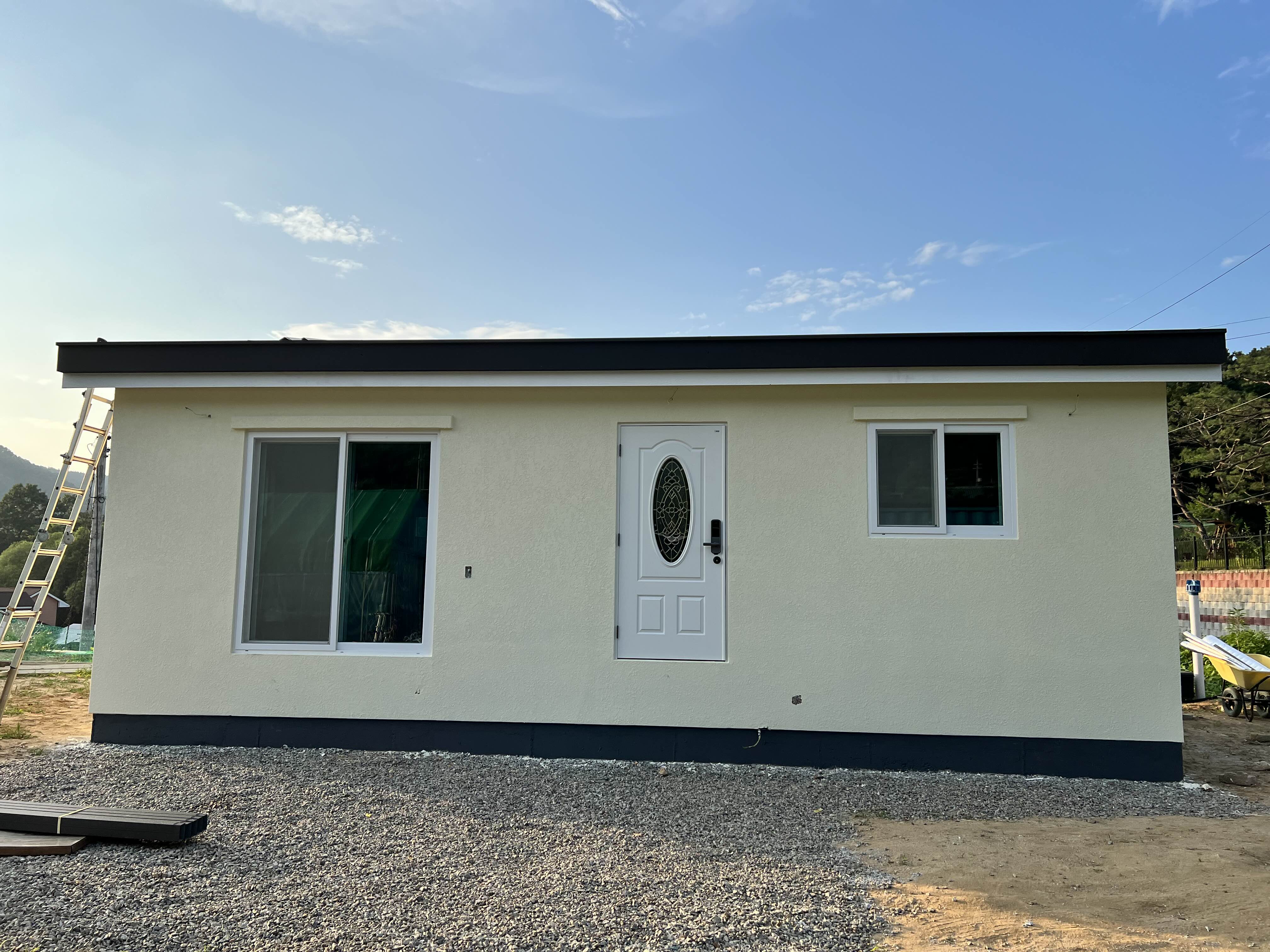 올 때 거실 쪽 창 부분이 어딘가에 부딪혀서 부서졌었는데, 사진 찍은 날 보니까 안쪽 창 연결 부분이 망가져 있더라고요. 허허 오늘 a/s 요청해 뒀는데 어떨까 모르겠어요. 그리고 다음 주부터는 데크 부분과 주차장 부붙 시멘트를 깔 예정입니다. 집은 작지만 알차서 마음에 들어요. 화장실이 좀 커서... ;;;; 이리 클 줄 몰랐네요. 방은 붙박이장이 들어와서 사람이 누우면 딱 맞는 사이즈예요. 뭘 더 못함. ㅎㅎㅎ 서울 집보다 훨씬 알차고 좋아요. 방이 하나인데 좀 아쉽지만요. 이대로 이사 오고 싶네요. 여보 방하나만 추가요~