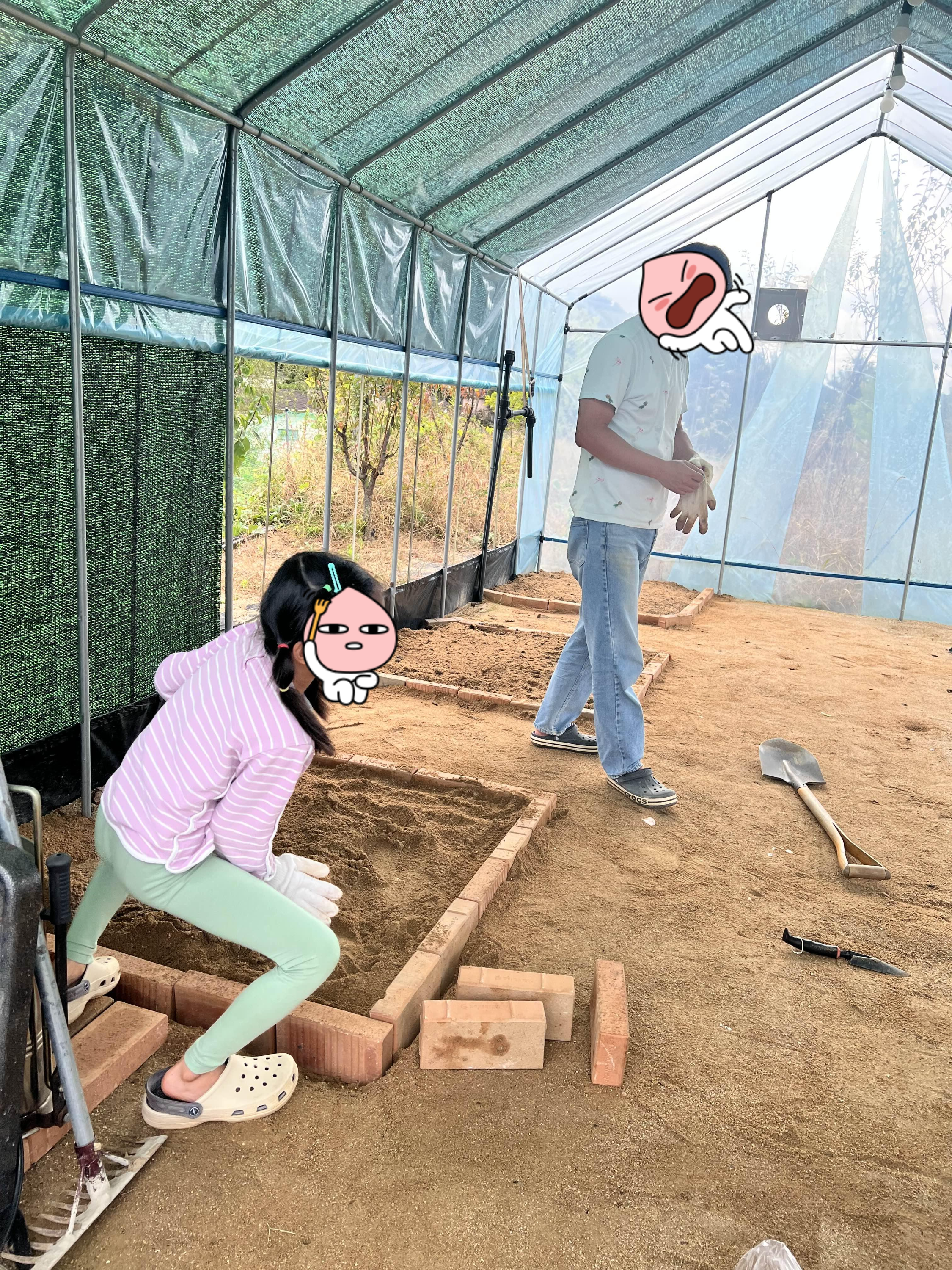집이 준공신고에 들어갔는데, 공사때문에 비닐하우스에 짐들을 넣어놨더니 건축사분이 문제가 될 수 있다고 하시더라고요. 작년까지는 <허브+대파> 비닐하우스였는데, 벌써 가을인지라 비닐하우스 옆에 칡과 같이 놀고 있는 파들을 이주시키기로 했습니다. 밭이나 꽃밭을 여러 번 갈아엎었더니 뭔가 할 의욕이 좀 부족한데, 남편이 알아서 했더라고요. 큰 아이도 자기 밭을 만든다며 아빠를 돕고요. 주말농장하면서 제일 많은 변화는 큰 딸인 것 같아요. 벌레보고 꺅꺅 대고 무당벌레에도 자지러지더니 지렁이도 같이 줍고 다른 벌레도 잡고 그래요. 관촬하며 활짝 웃고요. 자기 밭이라며 만들고는 파랑 양파 모종을 사다가 심었습니다.... 근데 그 양파는 엄마껀데 왜 거기다 심니? 적양파모종만 샀는데, 생각해 보니 그거 음식이 넣으면 색이 이상한데.... 잘못 샀네요. ;; 담주에 가서 일반양파도 사다 심어야지.