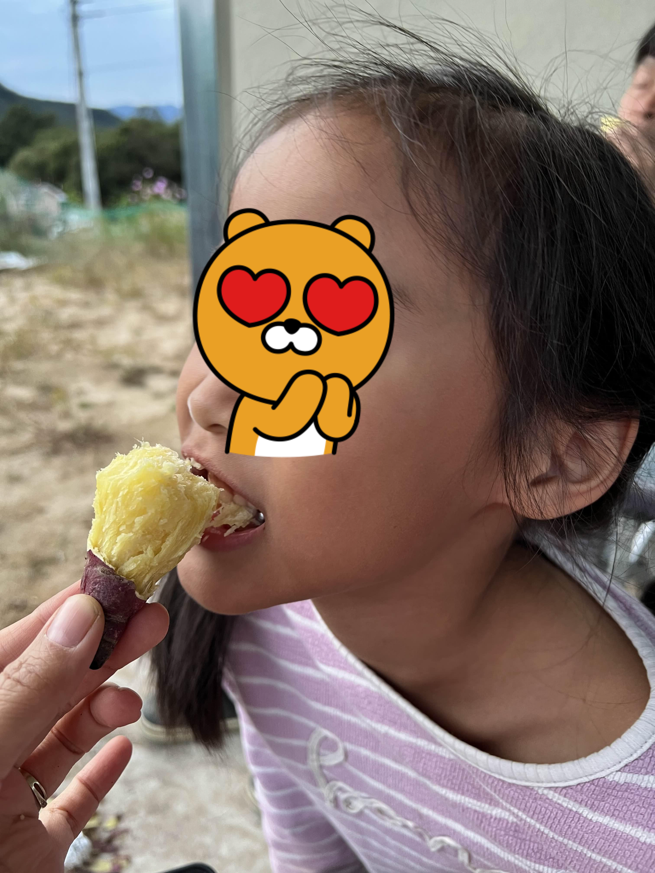 주변 농작 상황을 봐가면서 텃밭을 가꾸는데, 시험삼아 캐보다가 애들이 넘 좋아하길래 1/4가량을 수확했어요. 알이 굵은 고구마들도 많고 애들도 재밌어하며 계속 캐네요. ㅎㅎ 둘째도 손이 많
