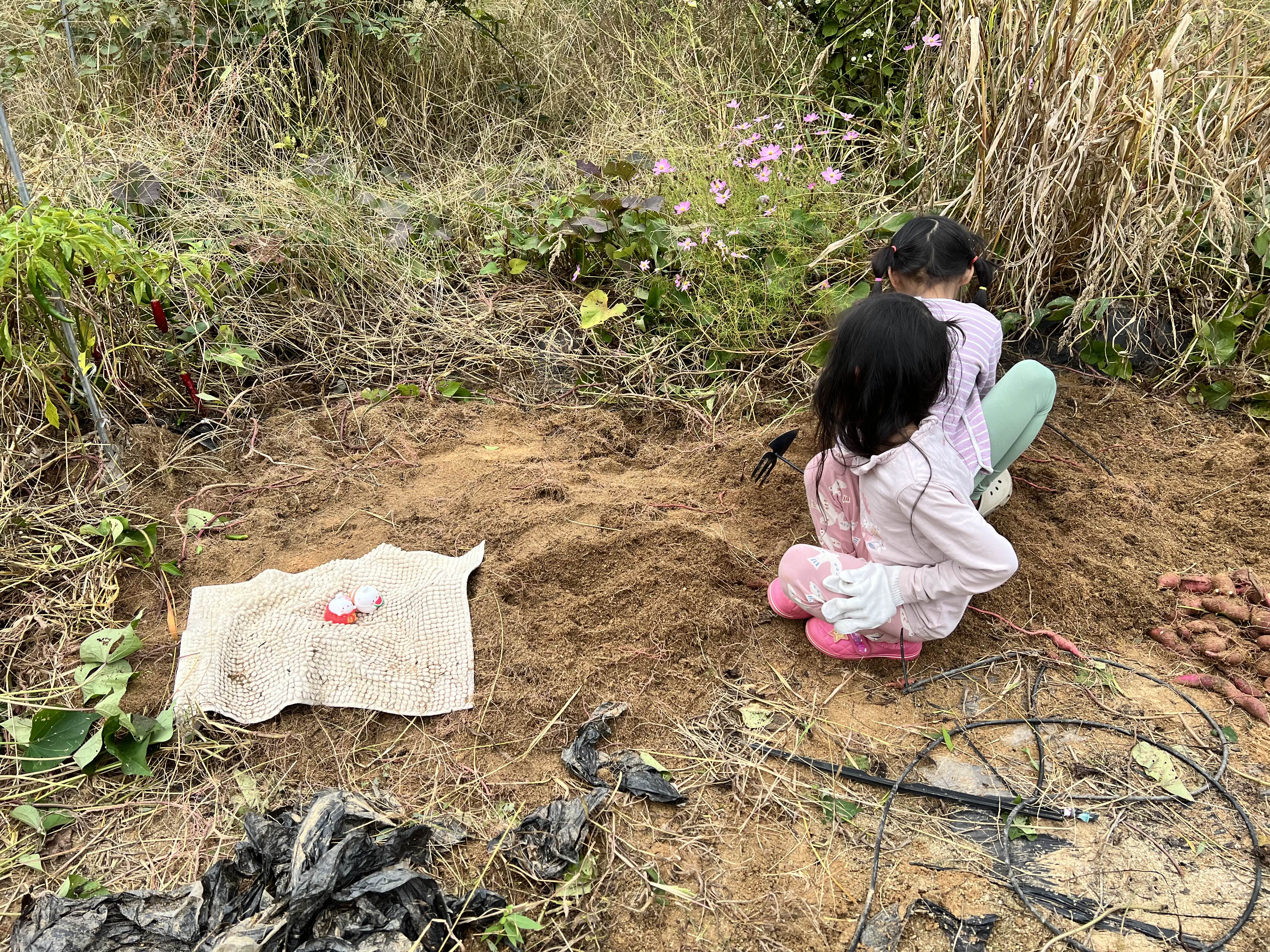 둘째가 몰랑이를 참 좋아하는데, 옆에 데려다 놓고 고구마를 캐는 모습이에요. ㅎㅎ 고구마 캐려면 어제 입은 옷 입고 나오라고 했는데, 왜 새로 꺼내입었니.... 빨래를 가리켜야겠어요. 자기가 해봐야 일감을 안 늘리지...