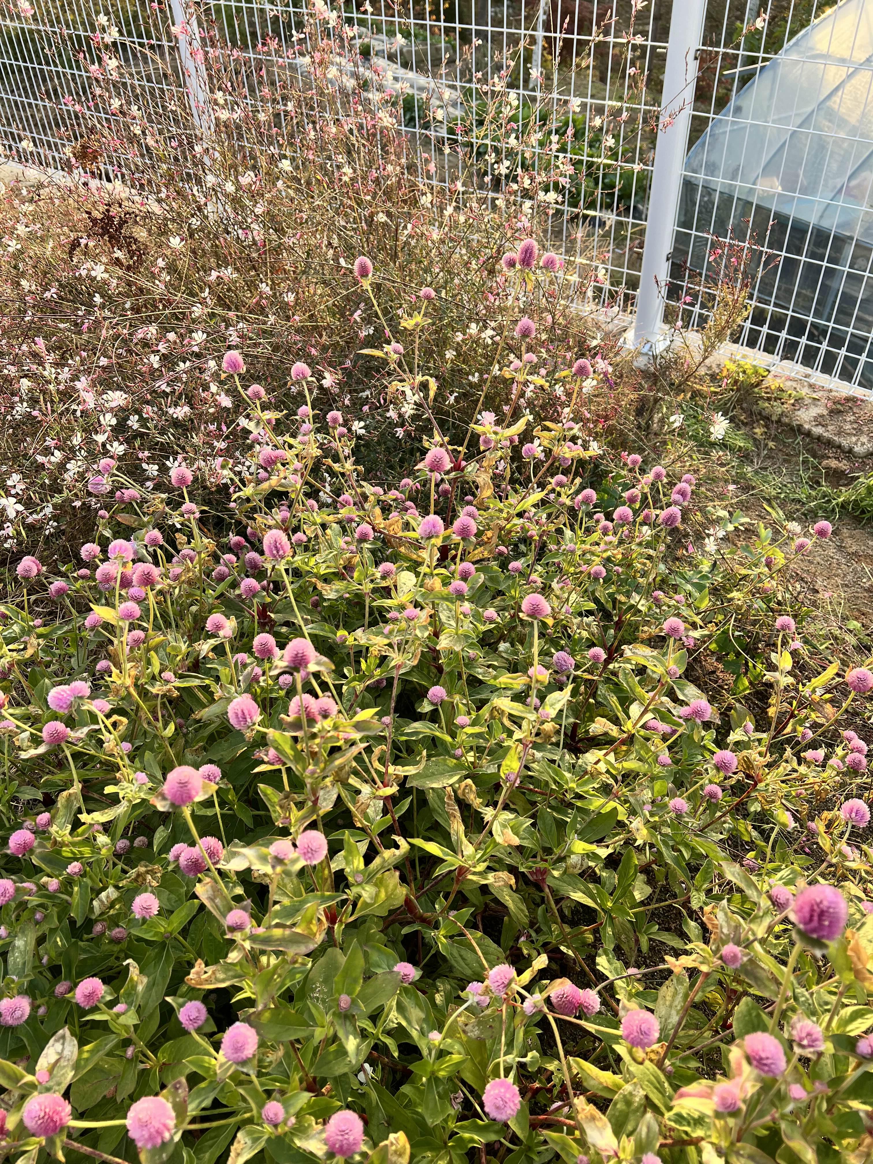 제가 고소공포증이 있어서 꽃밭을 끝에 조성은 했으나 가까이 가지 못했어요. 울타리 치는거 도와줄 때도 기어 다니면서 할 정도였거든요. 손이 안 가는 곳이었는데, 그래서인지 이렇게 천일홍이 만발이더라고요. 예쁘죠?