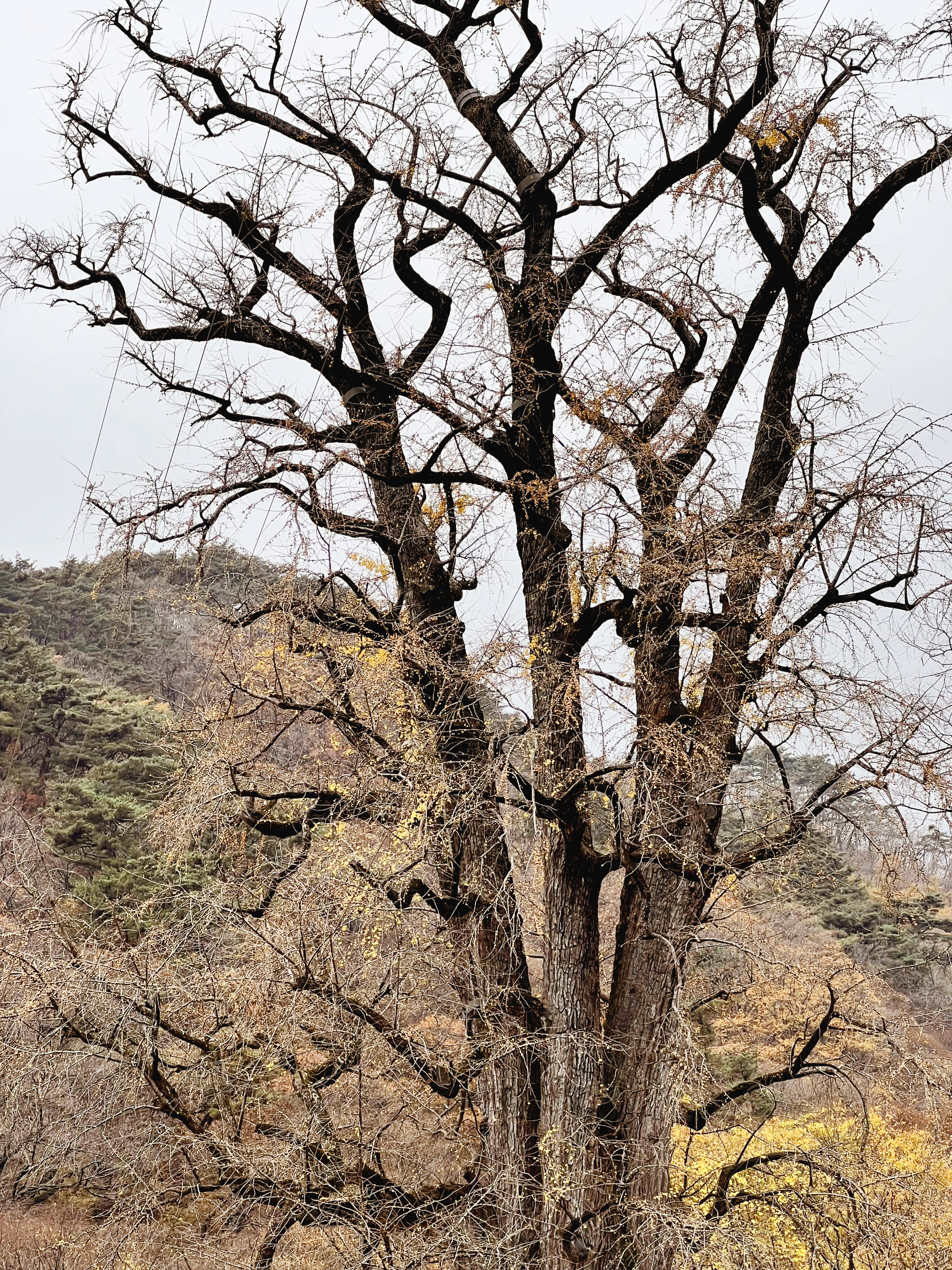 용문사의 1100년된 할머니 은행나무입니다. 이 은행나무를 보기 위해서 많이들 올라오셨는데, 이미 잎은 다 떨어져 있고 은행만 대롱대롱 달려있어요. 양평이 추운 곳이라 그런지 1~2미터만 높아져도 식물의 낙엽차이가 좀 나더라고요. 용문사 가기 위해 차를 타고 몇 개의 산을 넘는데 산 정상되는 부분엔 은행나무가 떨어져 있고 아래에는 붙어 있고 그랬어요.