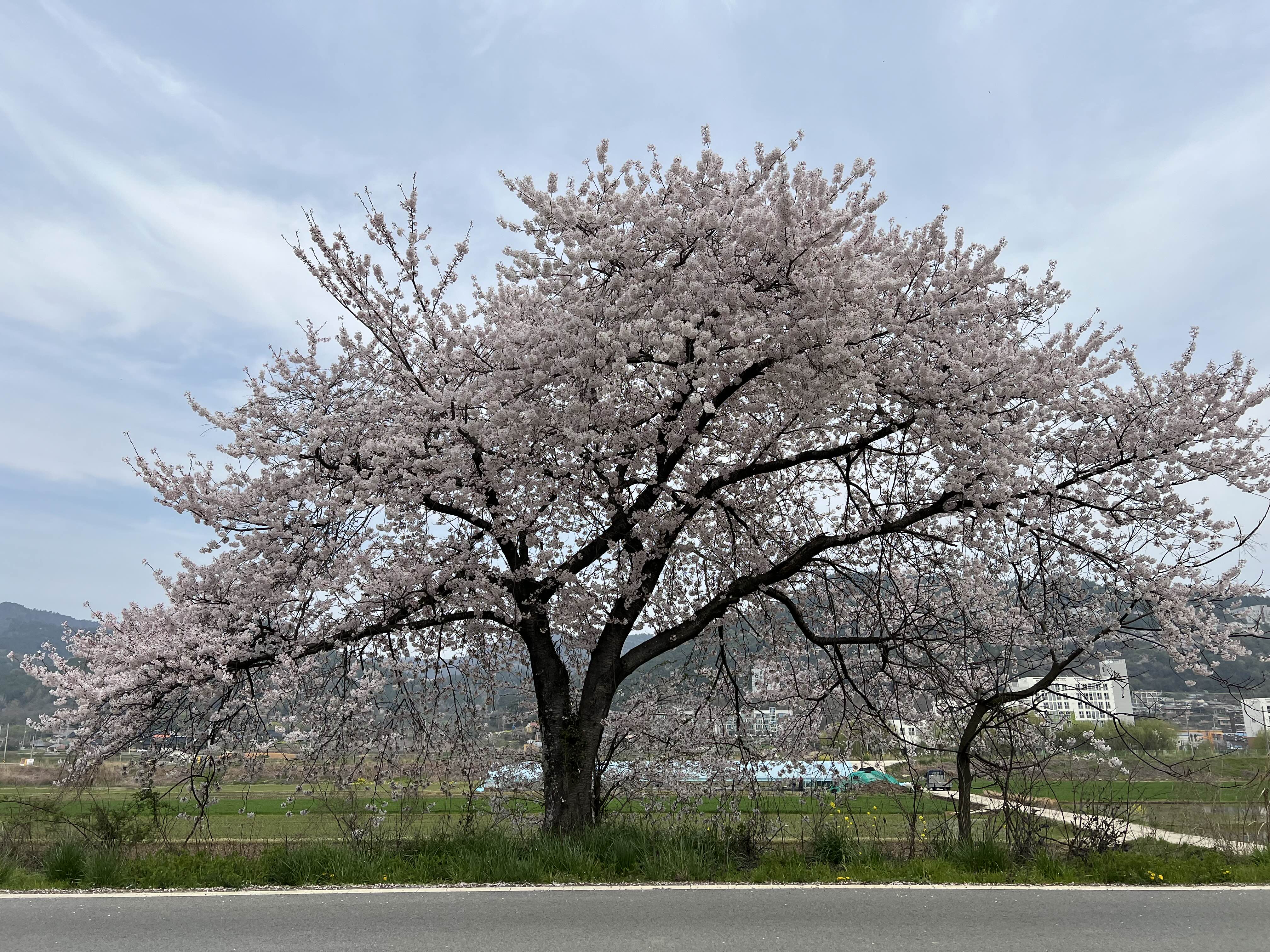 유채꽃과 벚꽃이 어우러져 멋진 풍경이에요. 낮엔 해가 따사롭고, 밤엔 아직 쌀쌀하고요. 추위 타는