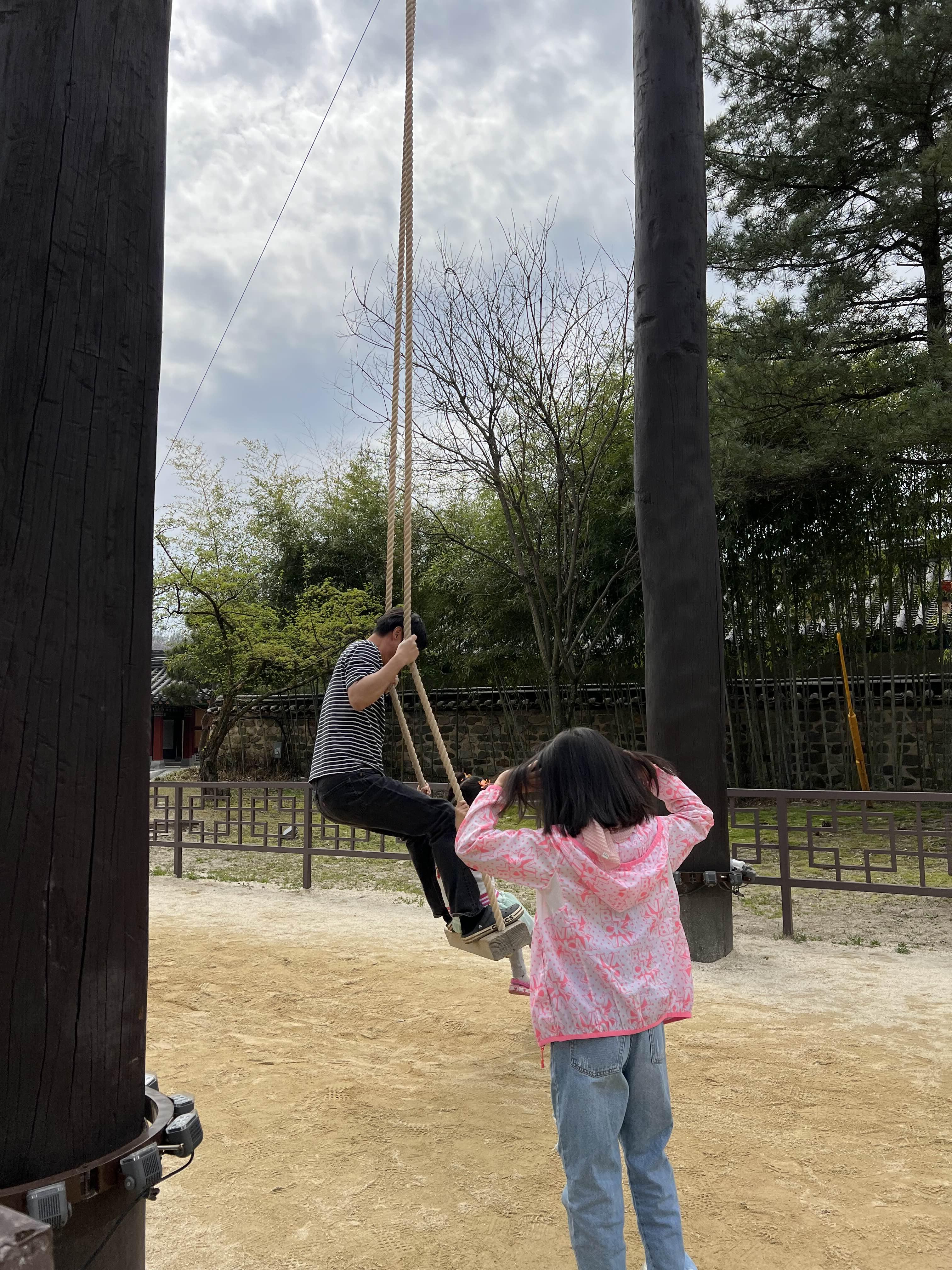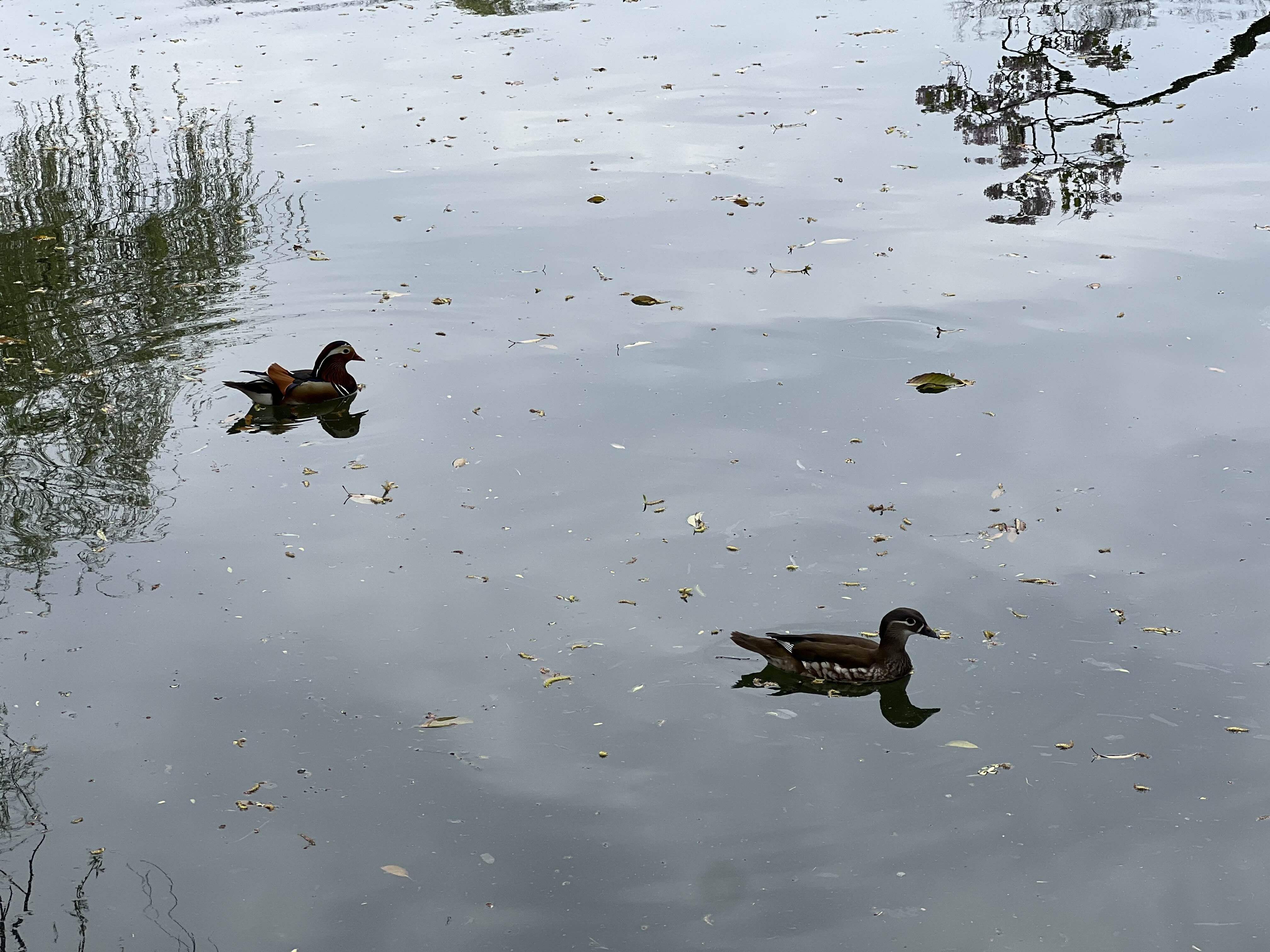 예전에 왔을 때 공연을 해서 따라다닌 적이 있어요. 그래서 이곳이 참 좋은 가봐요. 올해는 원앙도 있어서 놀랬어요. 잉어들과 밥 경쟁도 하고요. 애들 네게 원앙도 보여줄 수 있어 좋았습니다.