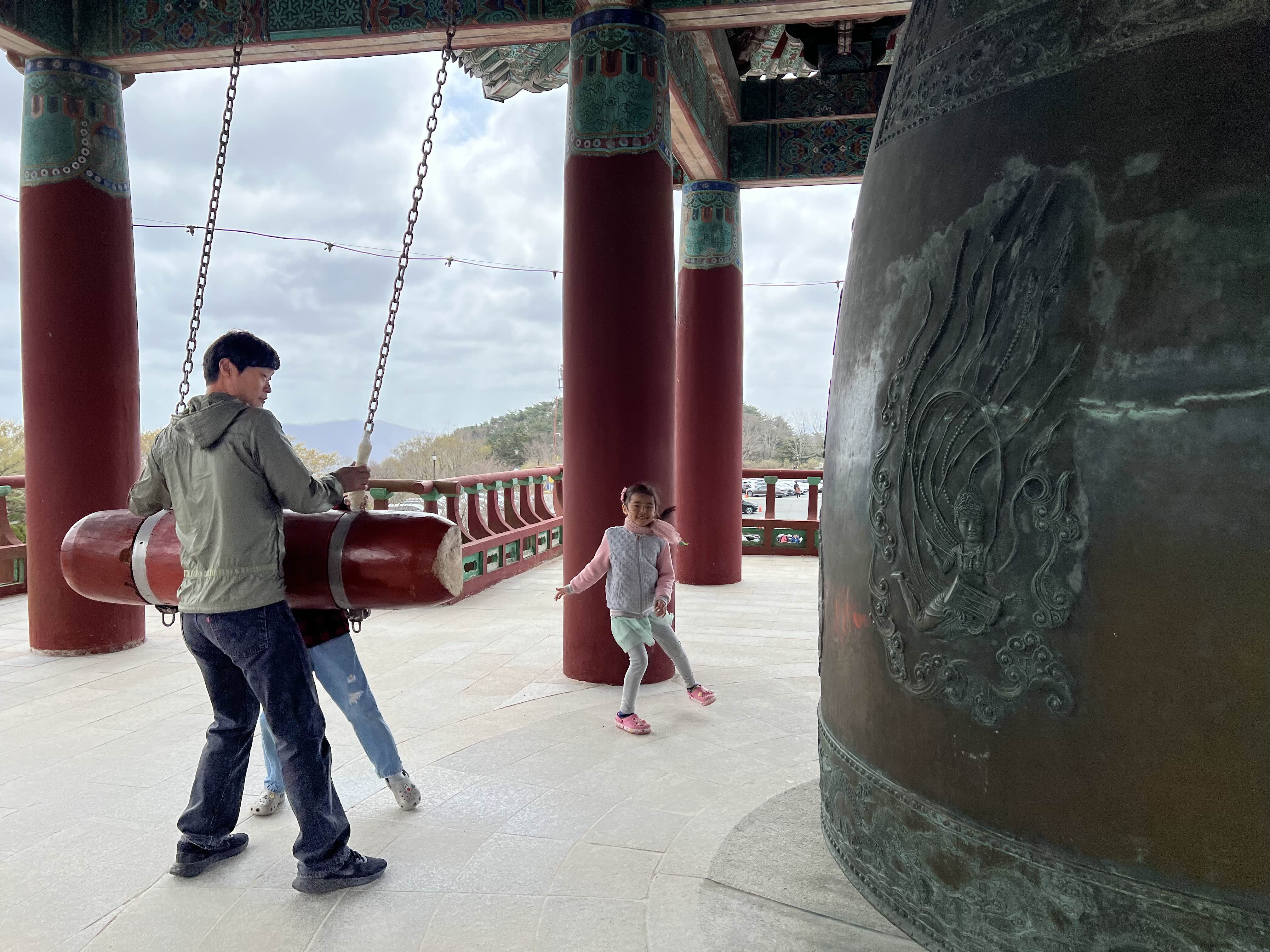 석굴암으로 올라가는 길에는 자연재해로 인해 도로 복구작업이 한창이더라고요. 낭더러지 길이라 매우 무섭습니다. 기부금을 천 원 받고 종도 쳐 볼 수 있게 해서 아이들이 각 한 번씩 쳤어요. 매우 좋아하네요. 영상을 찍는다고 했다가 버튼을 안 누른 거 있죠..... 바보+1