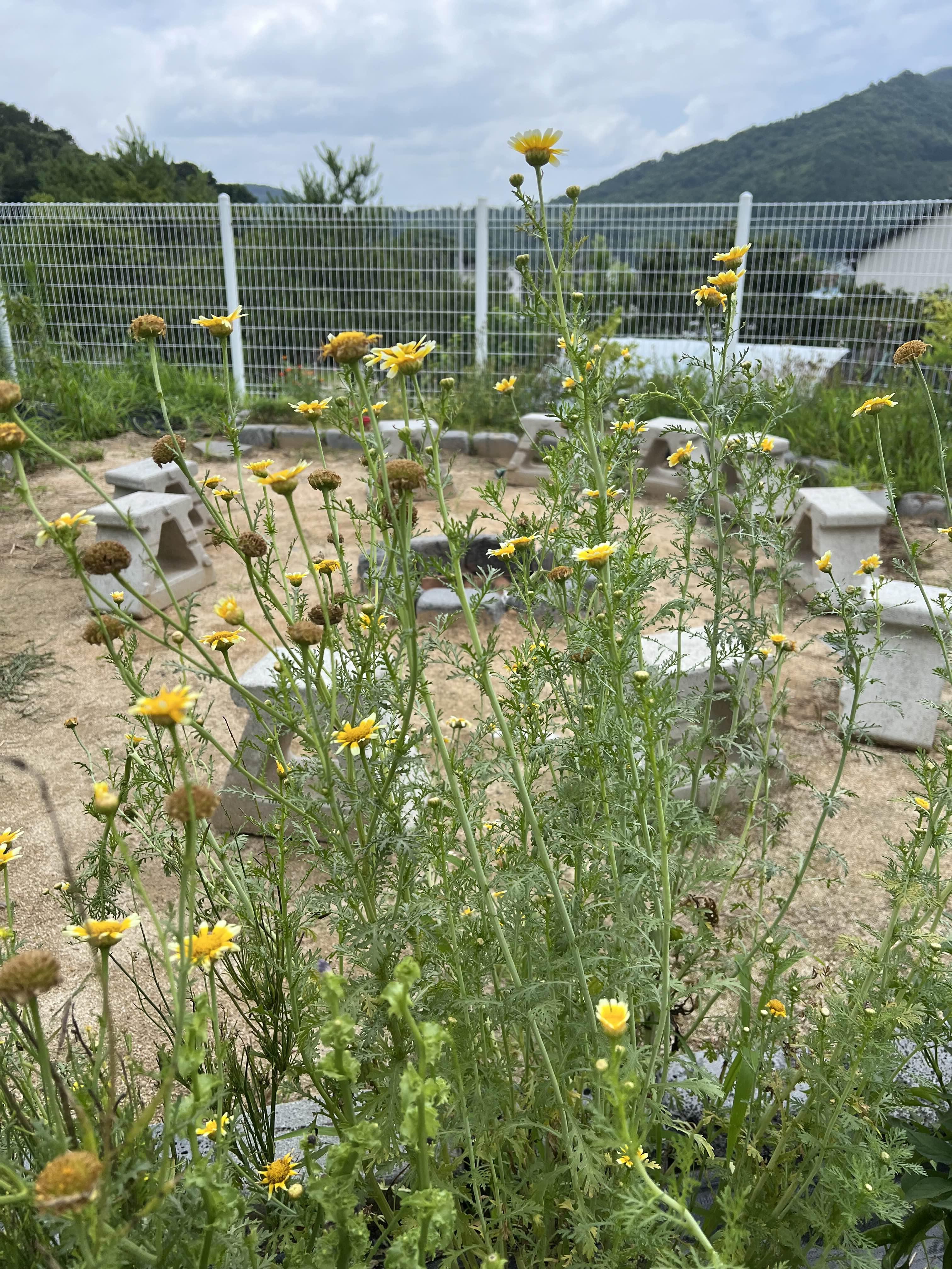 처음으로 치커리 꽃을 보았는데 이쁘네요. 오오 취향이다. 치커리를 꽃으로 키우자! (그 담주 남편이 뽑아버림, 상추 심는다고. 떼잉! )