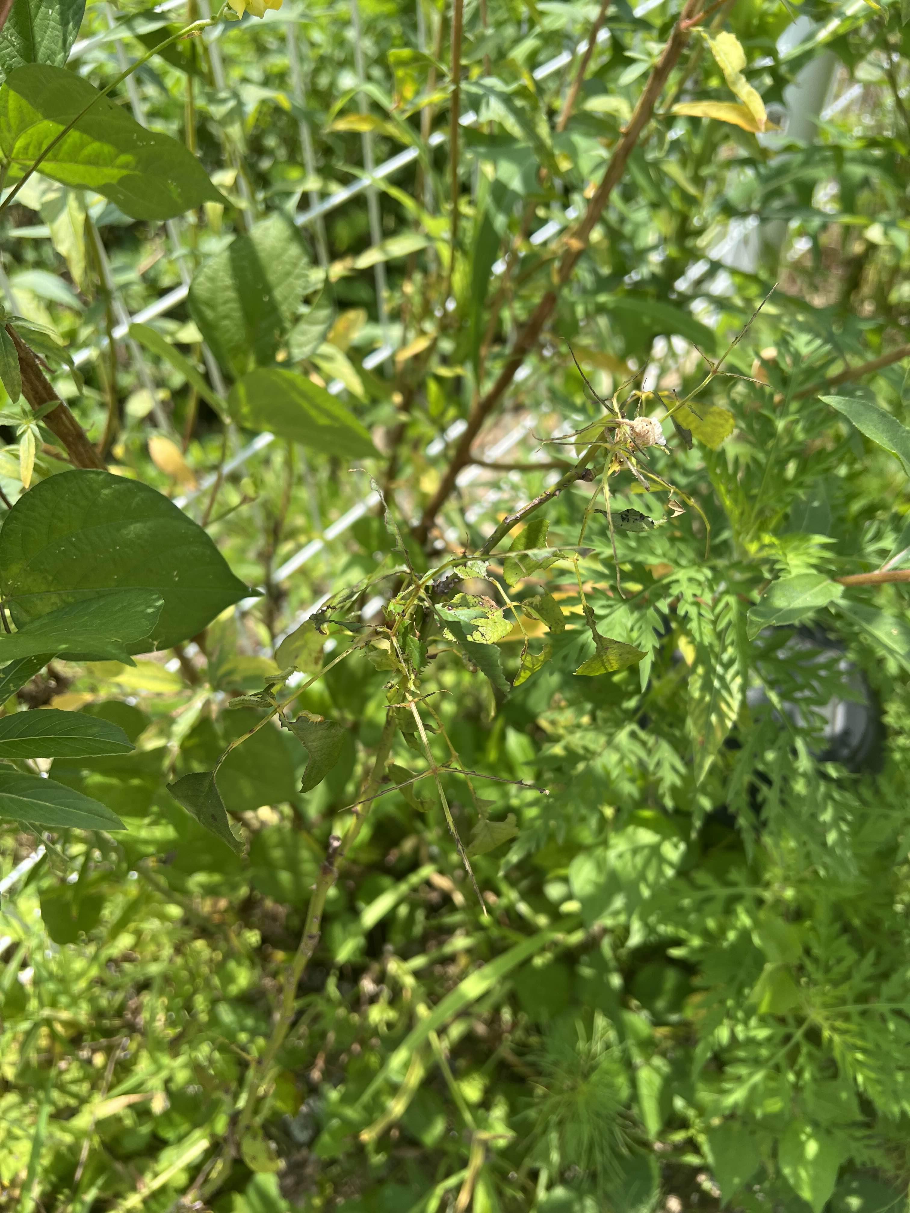 날도 덥고 잡일을 많이 한 남편이 약뿌리기를 거부하기에 뙤약볕에 서서 벌레들을 좀 잡아주었어요. 더블어 덩굴 식물들도 좀 제거하고요. 작년에 집짓는다고 방치했더니 덩쿨식물들이 그늘늘 너무 만들어서 식물들이 상태가 아주 안좋아졌었거든요.