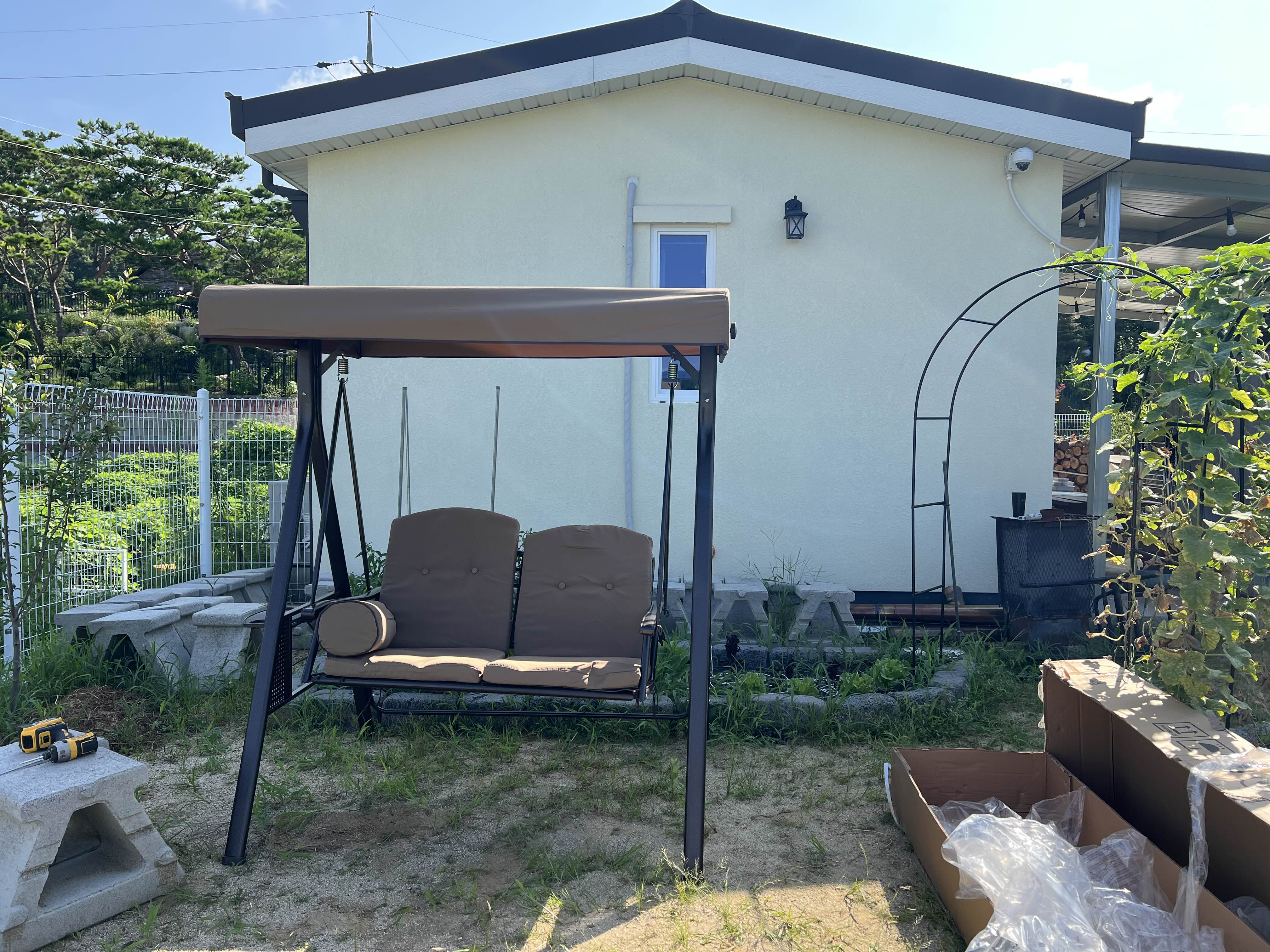 흔들흔들 야외의자를 받고 설치를 시작합니다.