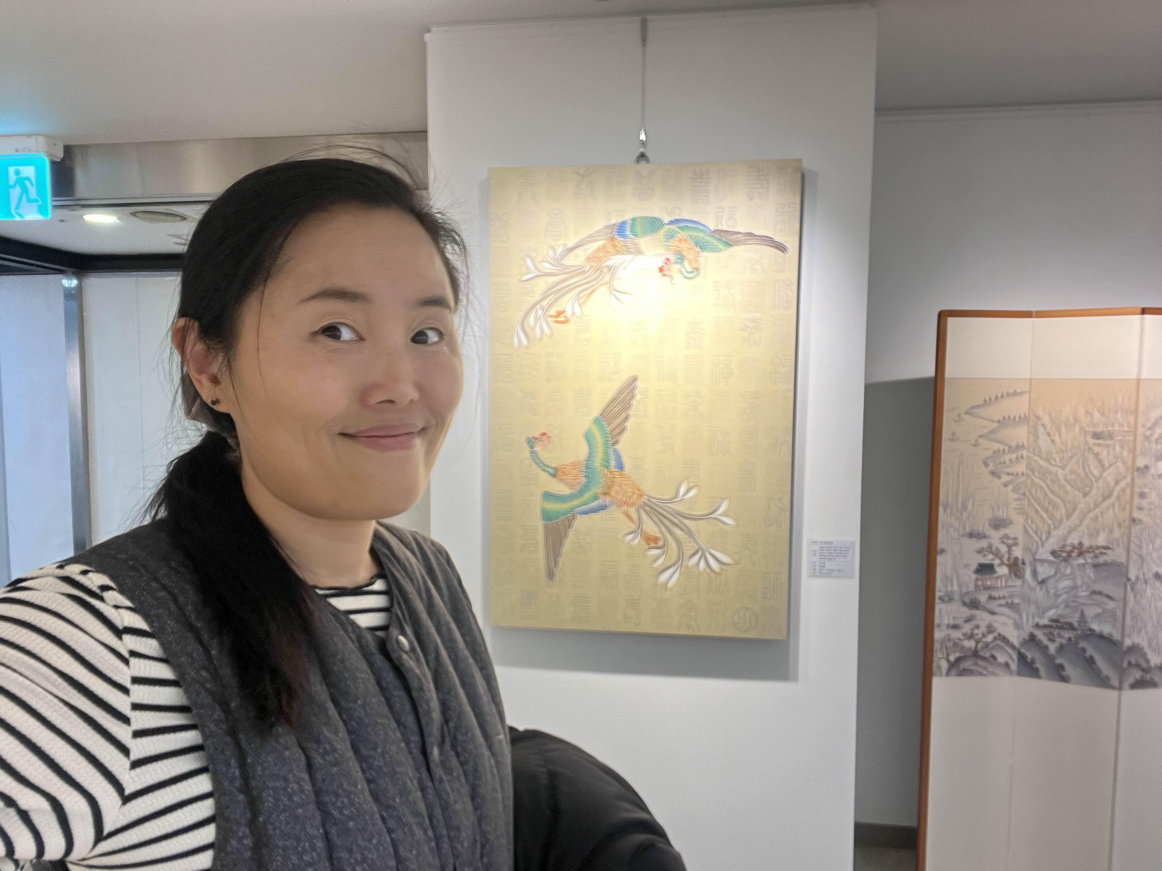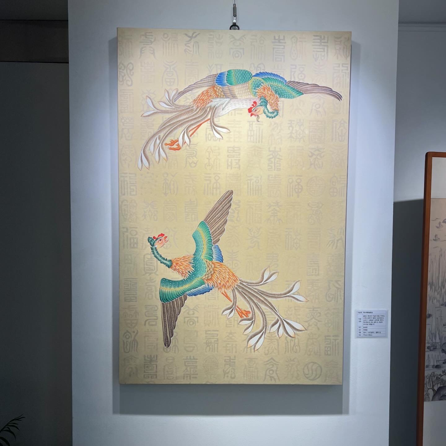 전 백수백복봉황도를 그렸답니다. 얼추 일년은 걸렸어요. 처음 작업하는 봉황이다보니 주 1회 선생님과 함께만 그렸거든요. 혼자 뭘 해야할지 몰라서요. ㅎㅎ 백수백복도을 따로 그리고 봉황도를 위에 올렸기에 사실 두 점이나 마찬가지입니다. ㅎㅎ 전지사이즈라 제법 커요. 털하나하나 열심히는 했지만 왜이리 부족한 게 많은지요. 사실 전시하기 부끄러웠어요.