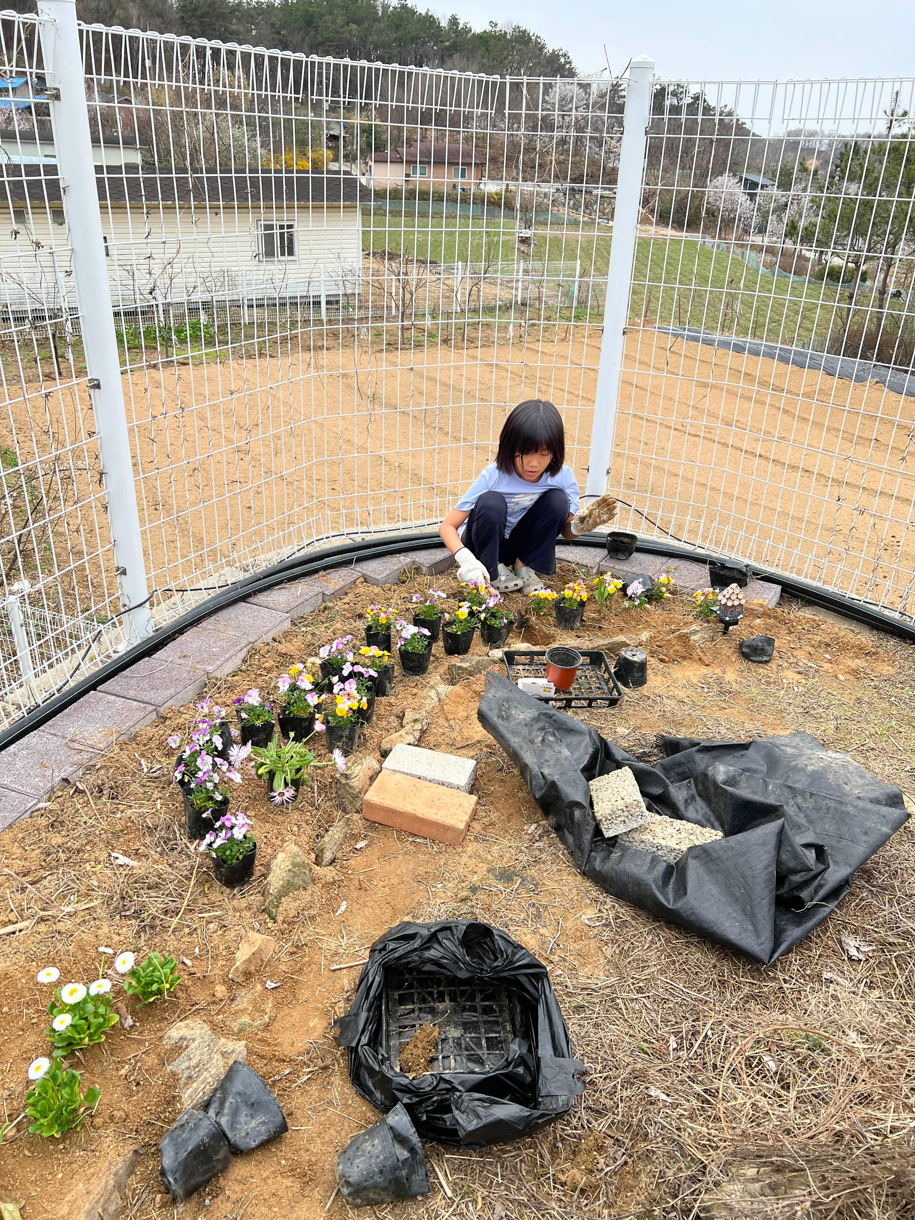 아래는 어제의 사진이예요. 비온다는 소식에 벚꽃길도 걷고 꽃도사다 심었어요. 한포트에 얼마하는데 한판에 6-7천원씩에도 팔더라고요. 아이에게 자신만의 밭을 만들어주고 꽃을 심게 했어요. 꽃값은 용돈에서 만원만 받기로.
