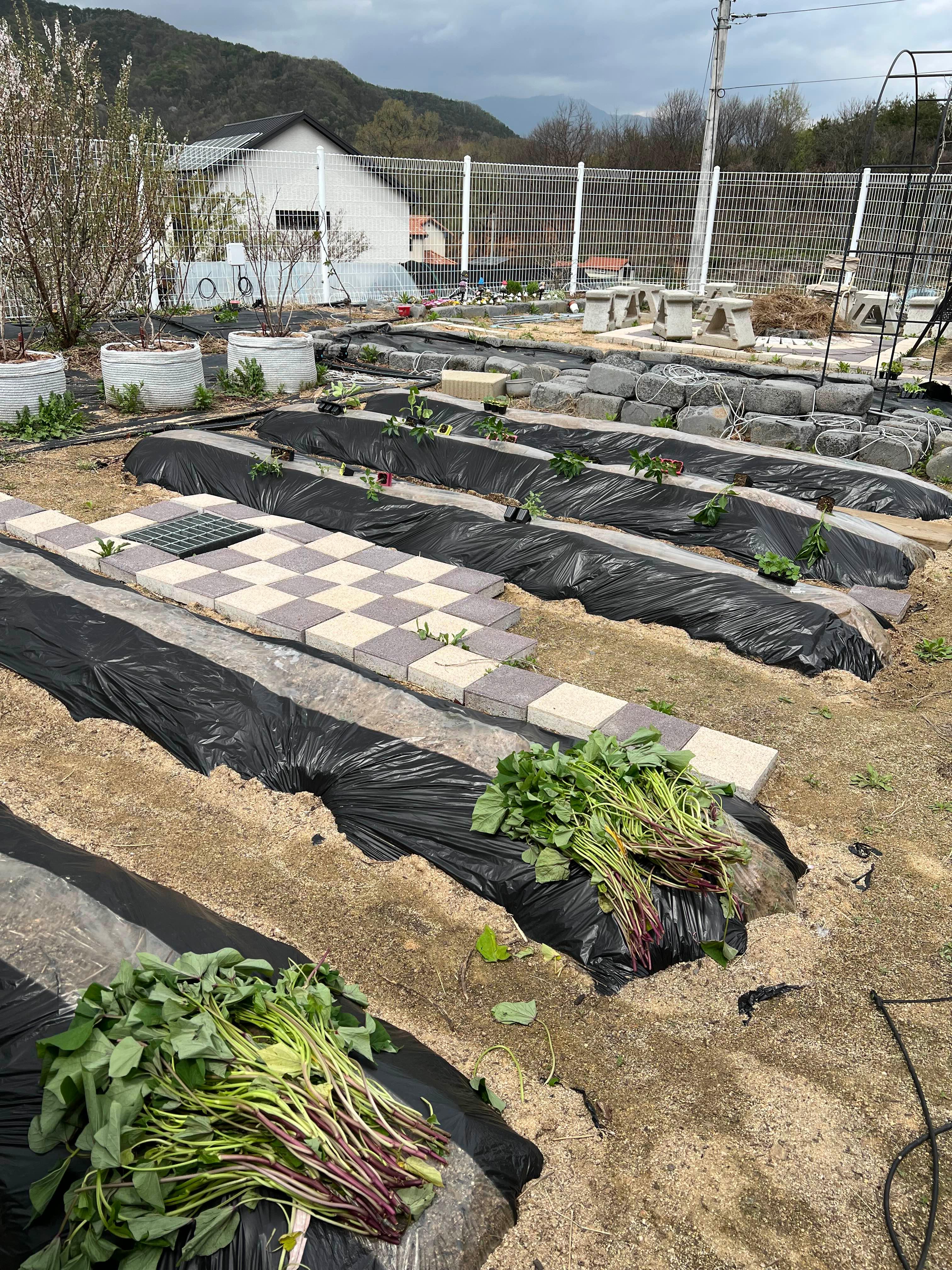 큰 애 꽃밭옆에 허브밭도 추가하기로해서 작업도 했어요. 오후에 또 비가 온다고 합니다. 주말마다 눈비우박이네요. 허허허