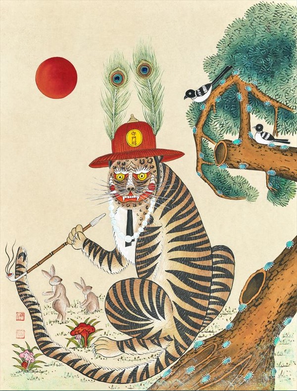 민화 속에선 사람처럼 행동하거나 표정을 지으며 사람과 자연의 경계를 흐리는 존재로 표현됩니다.