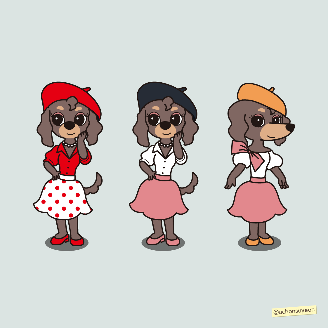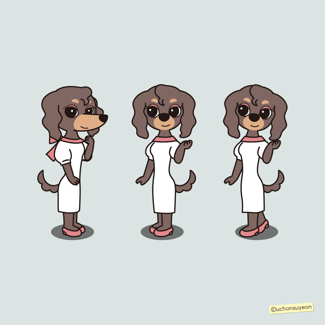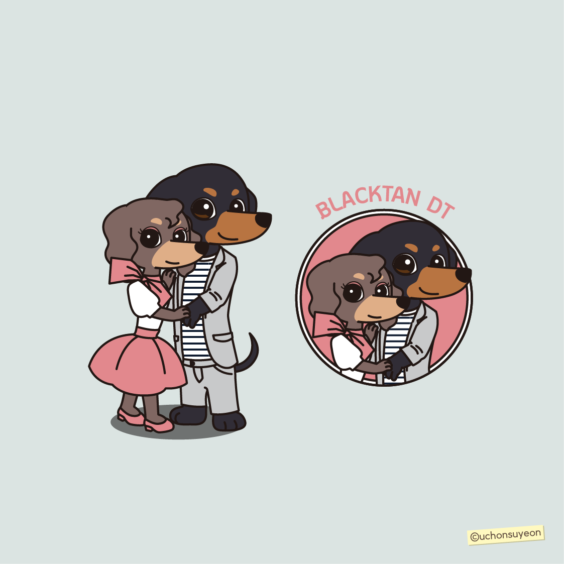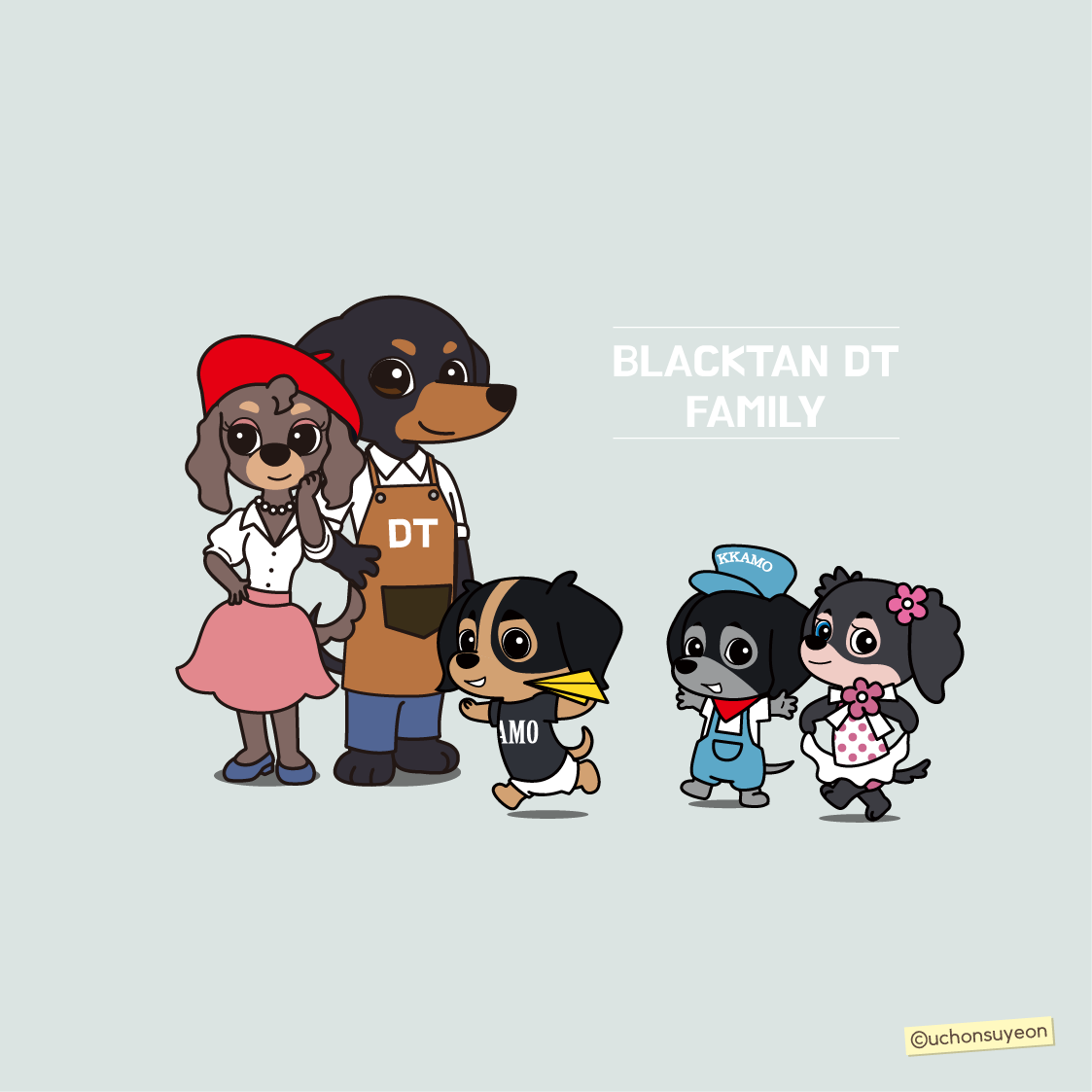 닥스훈트 모티브의 블랙탄디티 패밀리 캐릭터 디자인입니다.