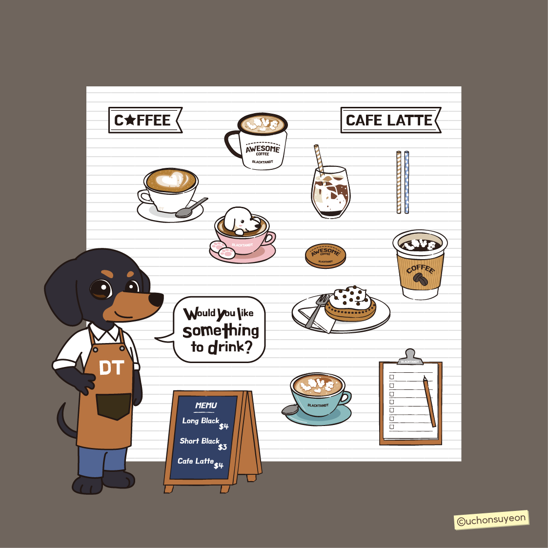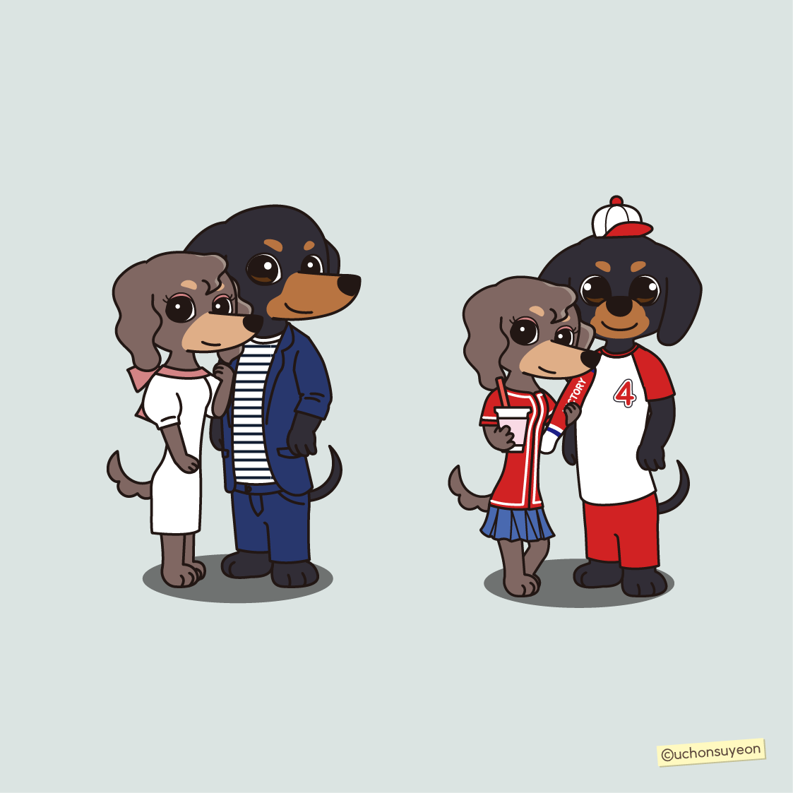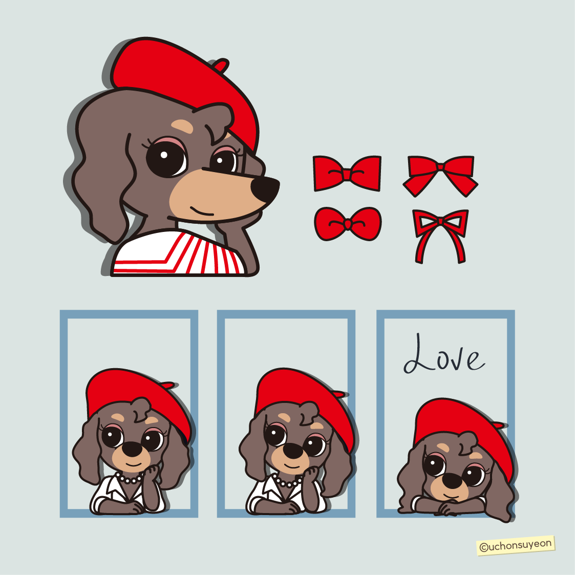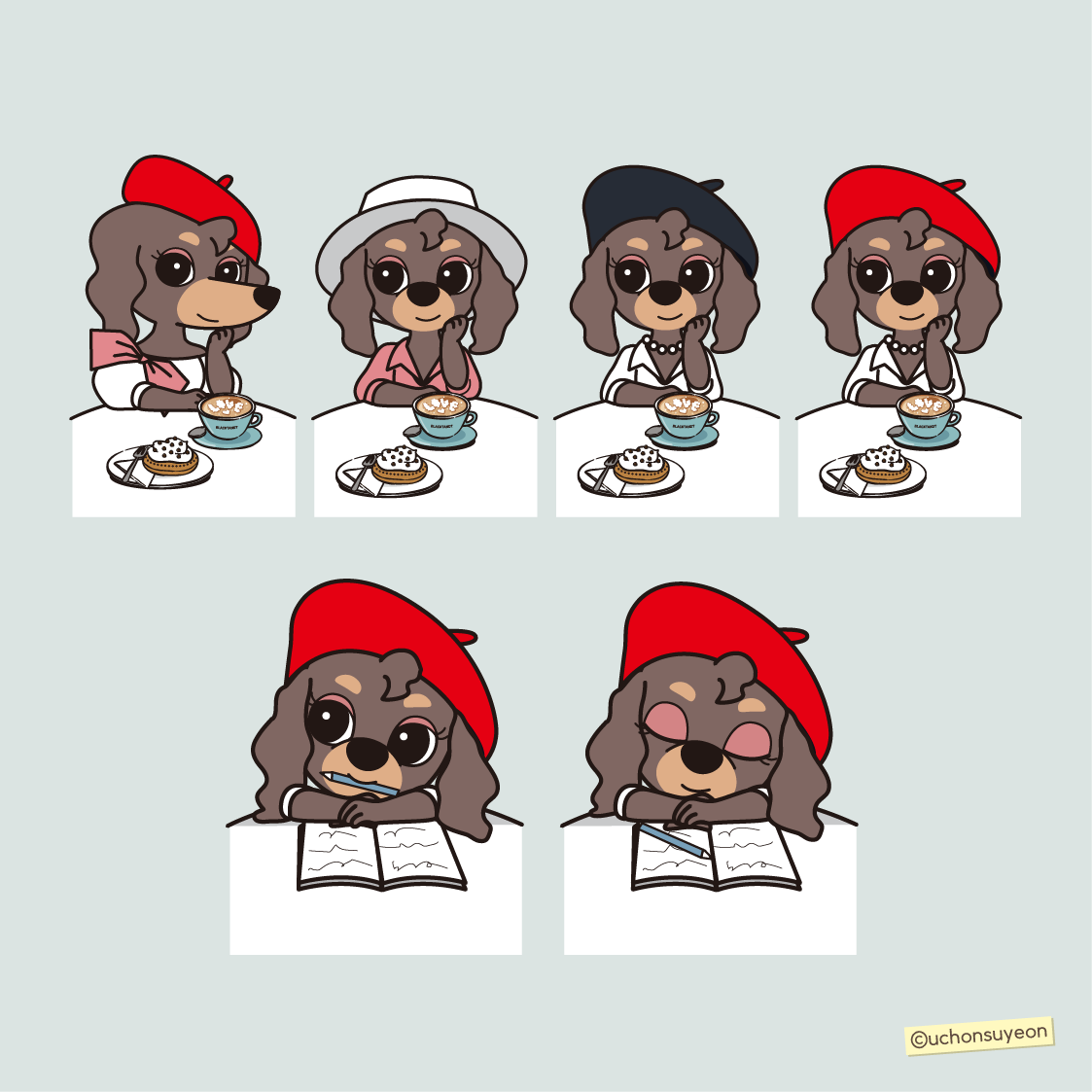 닥스훈트 모티브의 블랙탄디티 패밀리 캐릭터 디자인입니다.