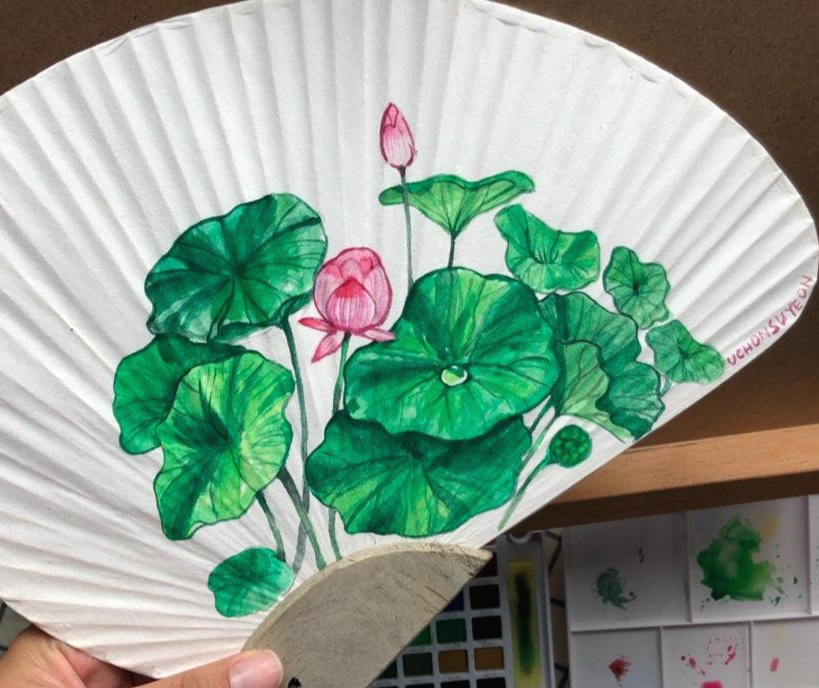 부채에 처음 그려보았어요. 여간 어려운게 아니네요. 이런 종이 질감은 정말 오랜만입니다. 뒤에 비치지 않을까 걱정했는데, 다행히 괜찮네요. ^^