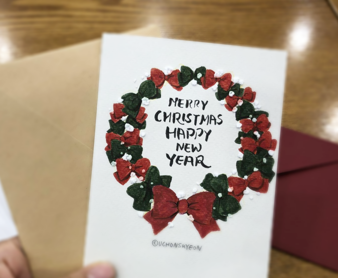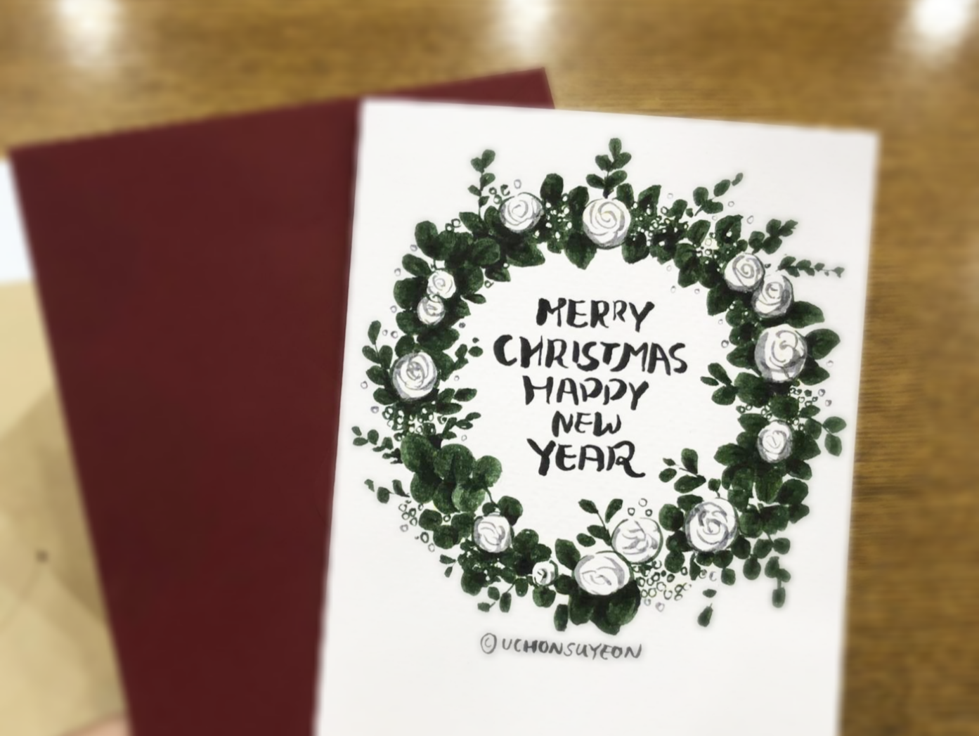 처음으로 팝콘펜을 써서 카드를 만들어보았어요. 혼자 하면 꽃리스로 하는거 정말 귀찮은데, 카드만드는 김에 열심히 하니까 또 최선을 다해(?) 그리게 되더라고요. 그리고 생각보다 결과가 잘나와서 놀랐어요. ㅎㅎ 대 만족 ㅎㅎ