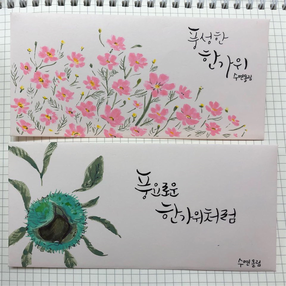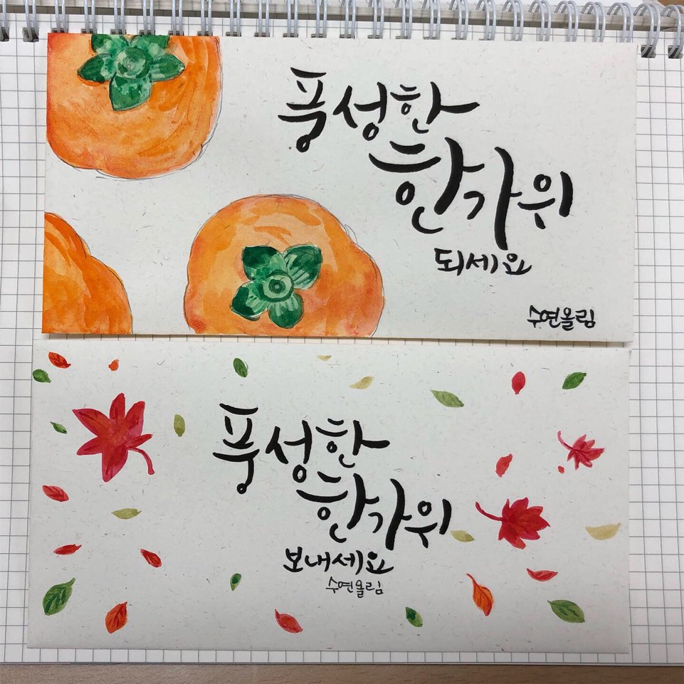 작년, 2019년 추석에 쓰고 그렸던 캘리그래피.