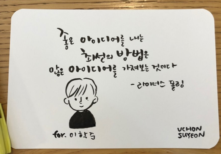 가끔씩 만나는 학준님에게 선물한 캘리그래피예요. ㅎㅎ