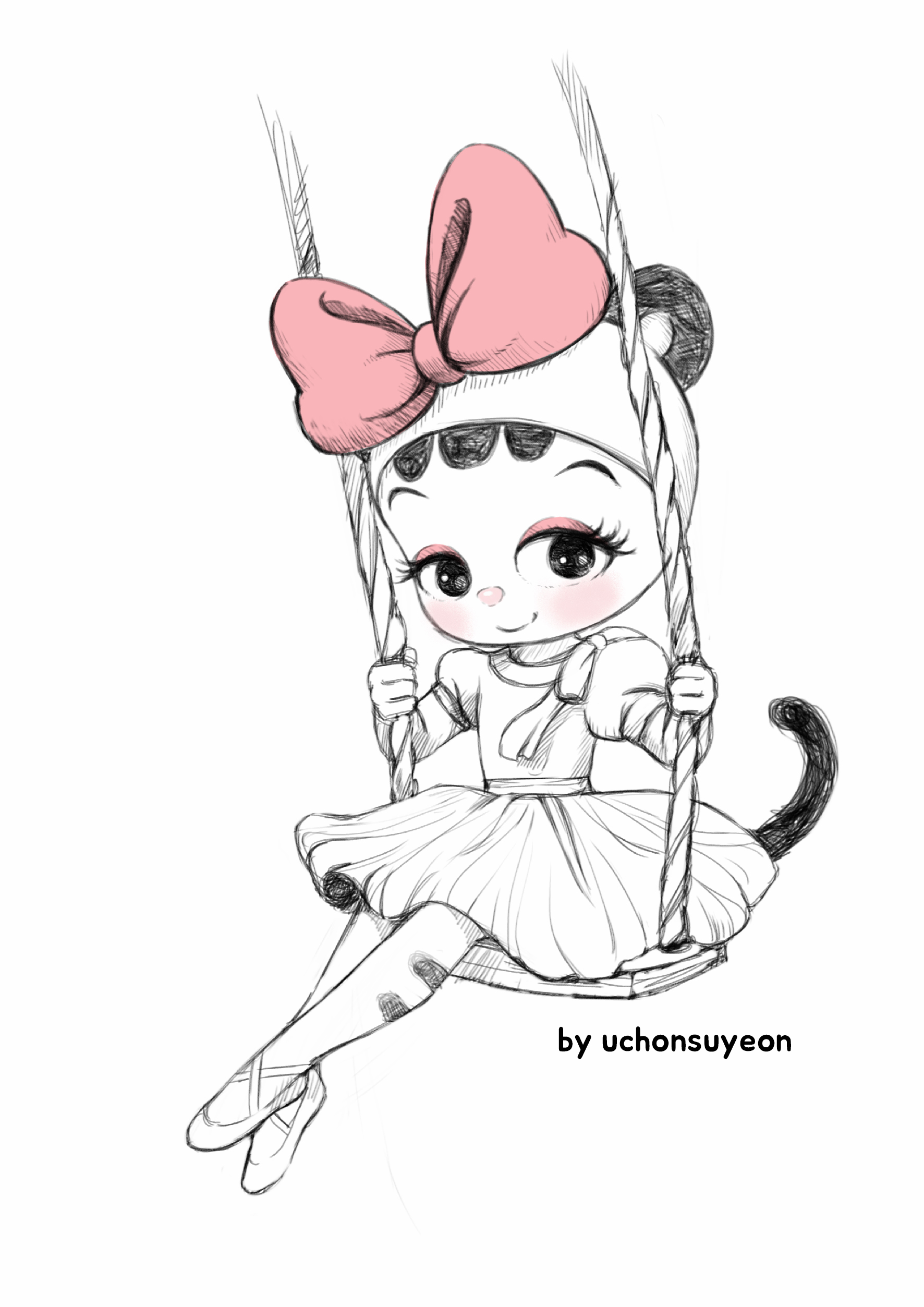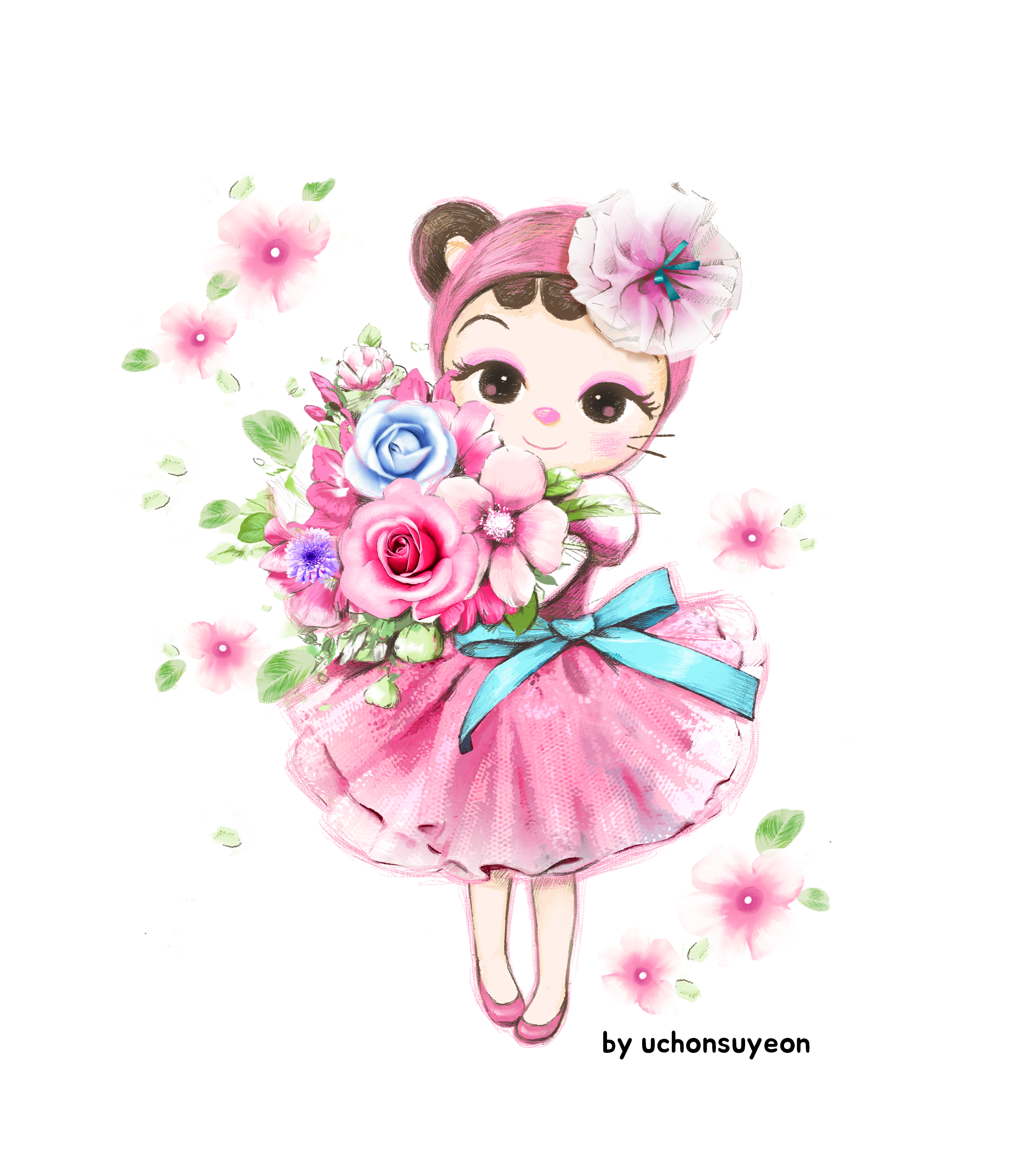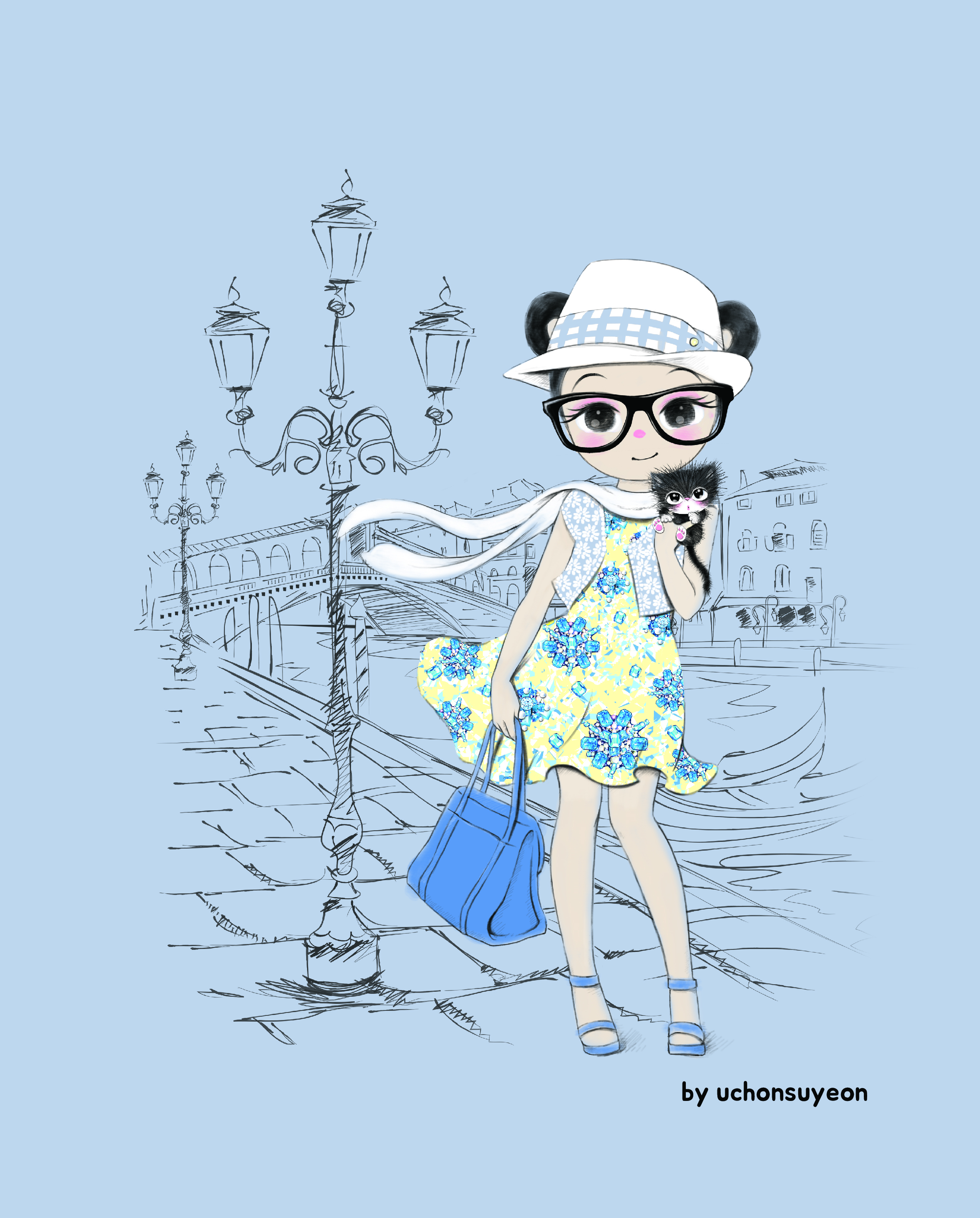 의류 그래픽은 보통 의류 디자이너 분들이 의상에 맞춰 필요한 그래픽을 요구하세요. 혹은 그래픽 디자이너가 그 옷에 맞는 그래픽을 서치해서 진행하기도 하지요. 저는 원래 캐릭터 부서였고, 관련된 디자인이 필요할때만 요청에 따라 그림을 작업해 보냈어요. 첼리캣이라는 캐릭터는 컬리수의 여아용 메인 캐릭터 였어요. 의류의 전반적인 컨셉이 바뀌면서 사라진 캐릭터 이기도 하지요. 제가 첼리캣을 개발한 것은 아니고요. 서브 다자이너로써 응용 작업을 주로 했어요.