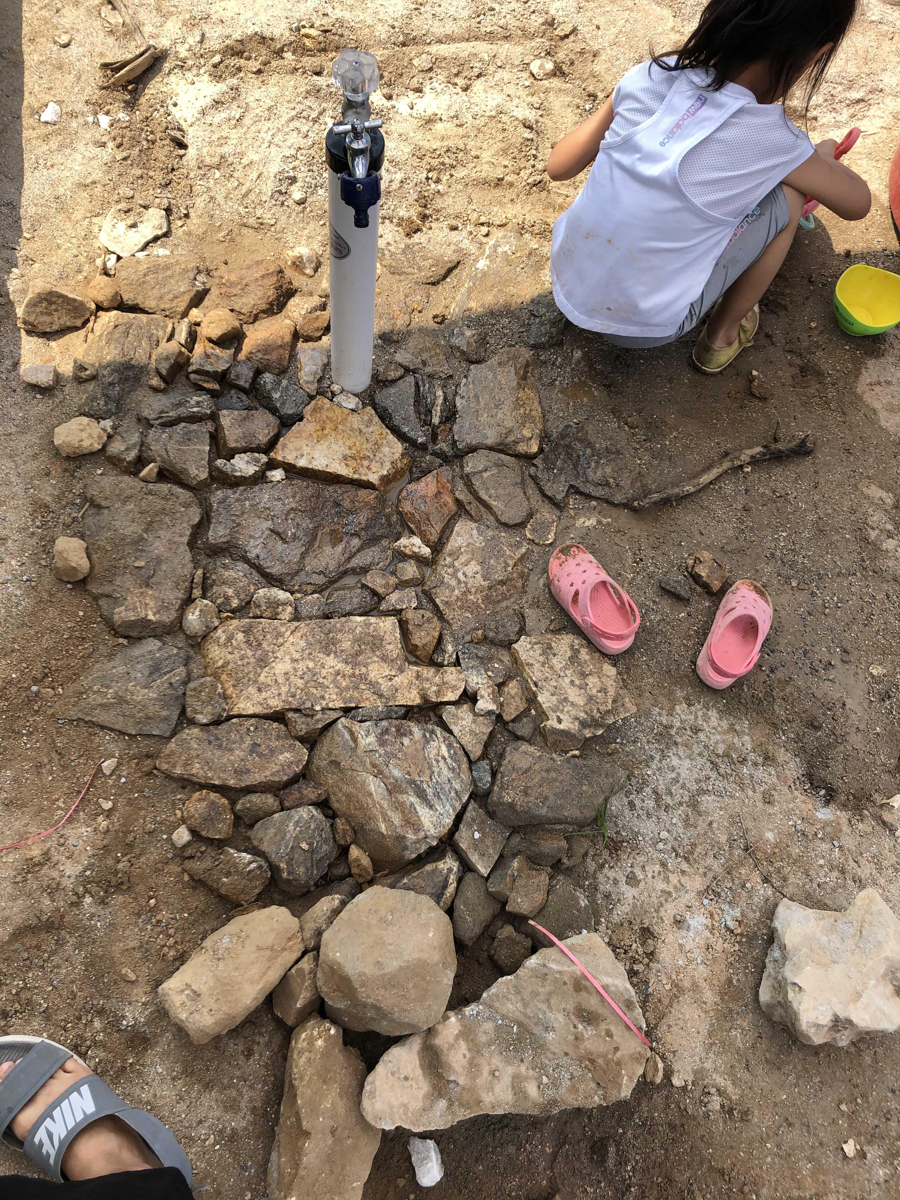 수전의 변천사다. ㅎㅎ 돌로만 깔면 빨래할 곳이 없어서 마침 깨진 디딤석이 있길래 중간 사진처럼 변형해서 바꾸어보았다. 그런데 자꾸 네모반듯하게!를 외치니 맨 오른쪽의 사진처럼 네모반듯한 애로 바꾸어주었다. 아랫쪽에는 물 내려가는 물길도 내주었다. 후훗. 점점 발전하는 듯? 역시 적성에 맞아보다.