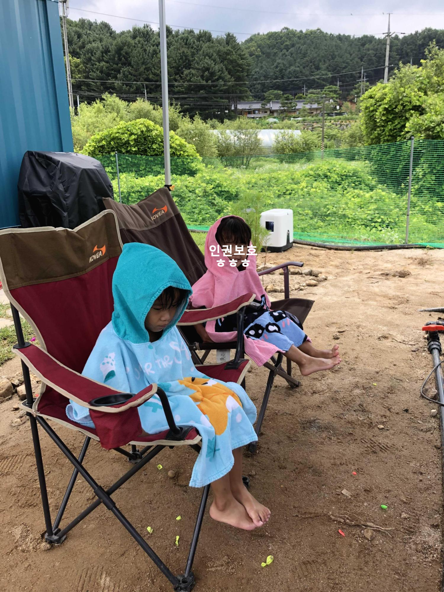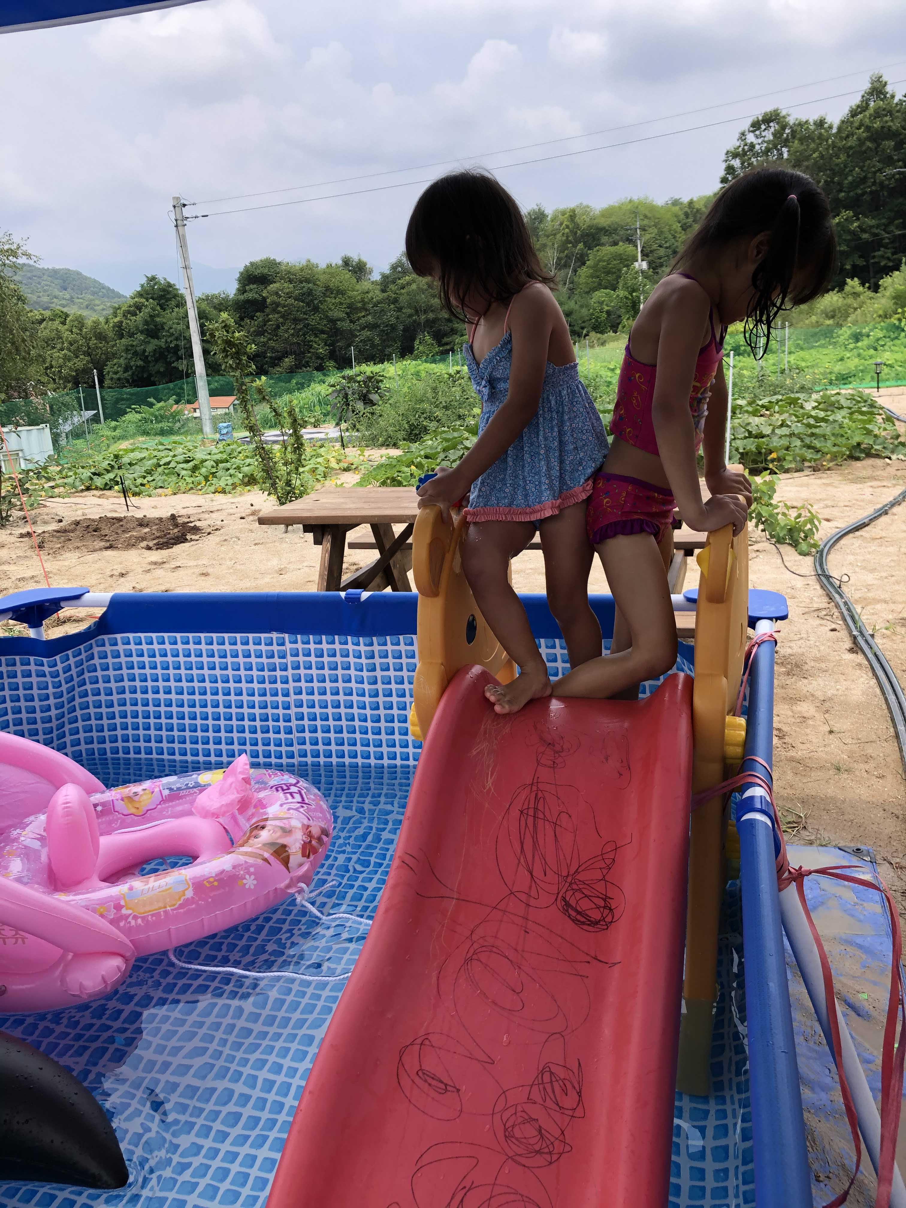 수돗물로만 가득 채우던 수영장에 지하수를 넣었더니 오후가 되도록 물이 차가워서 아이들은 들어갔다 나오기를 반복했다. 이 곳에 가면 대낮에 족욕하는 통 한가득 지하수를 담고 캠핑용 의자에 앉아 쉬는데, 시원한 바람에 솔솔 잠을 들라치면 아이들이 엄마를 불러재껴서 쉬기가 쉽지 않았다. 오전 내내 수고한 남편은 에어컨이 가동되는 농막 안에서 아이들을 나에게 온전히 맡긴 채 잠이 들었다. 나는 아이들의 부름을 참다 참다 '아빠 부르렴'이라는 한마디를 남기고 모르쇠 하면서 멍을 때렸다. 아이들은 아빠를 고래고래 찾으며 낮잠을 방해했고 결국 아빠는 불려 나와 육아에 합세했다. 으하하하 남편은 아이들이 부른 이유를 모를 것이여. 으하하하하하