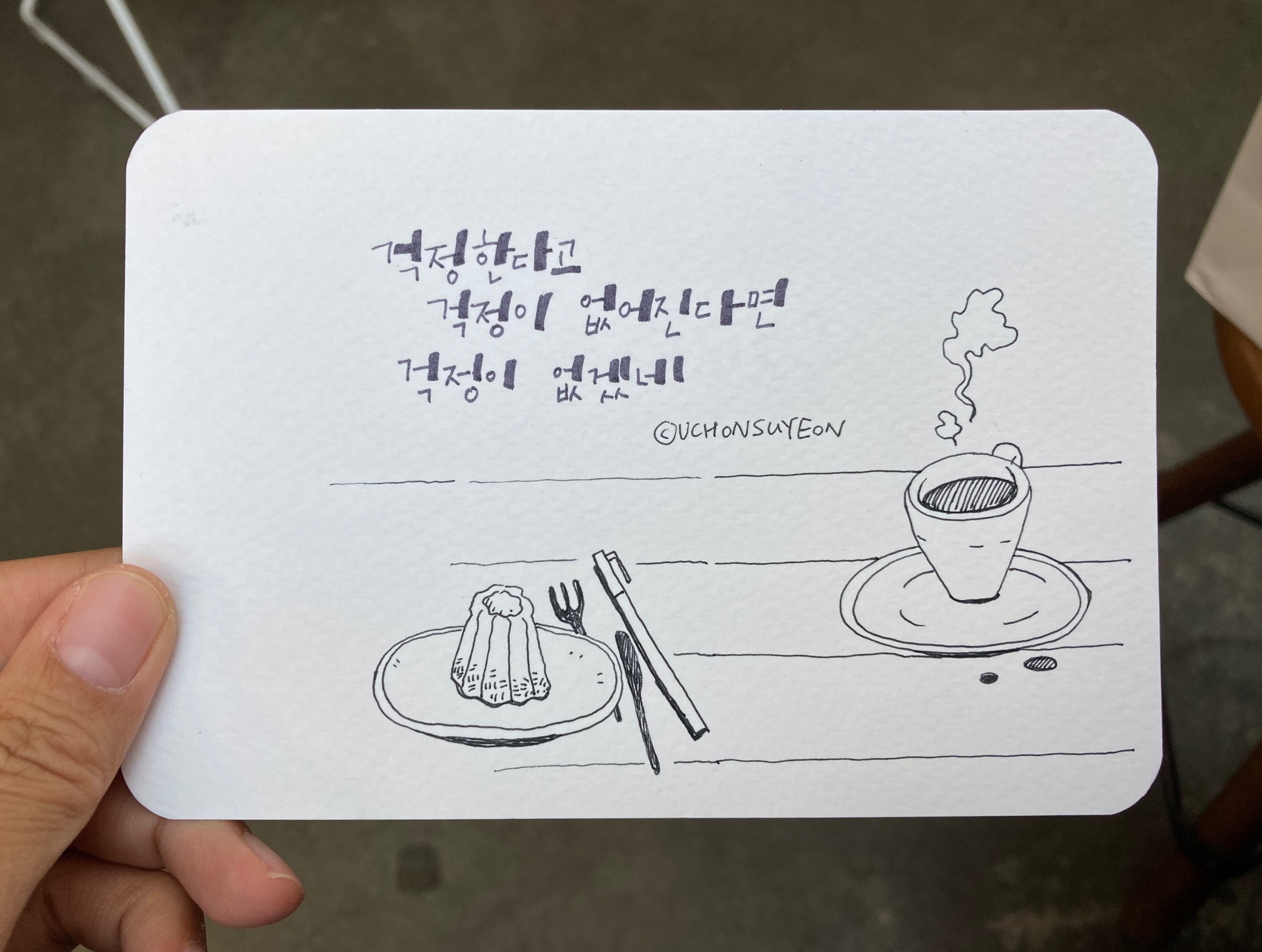 오랜만에 만나 지인에게 주는 캘리그래피 선물.