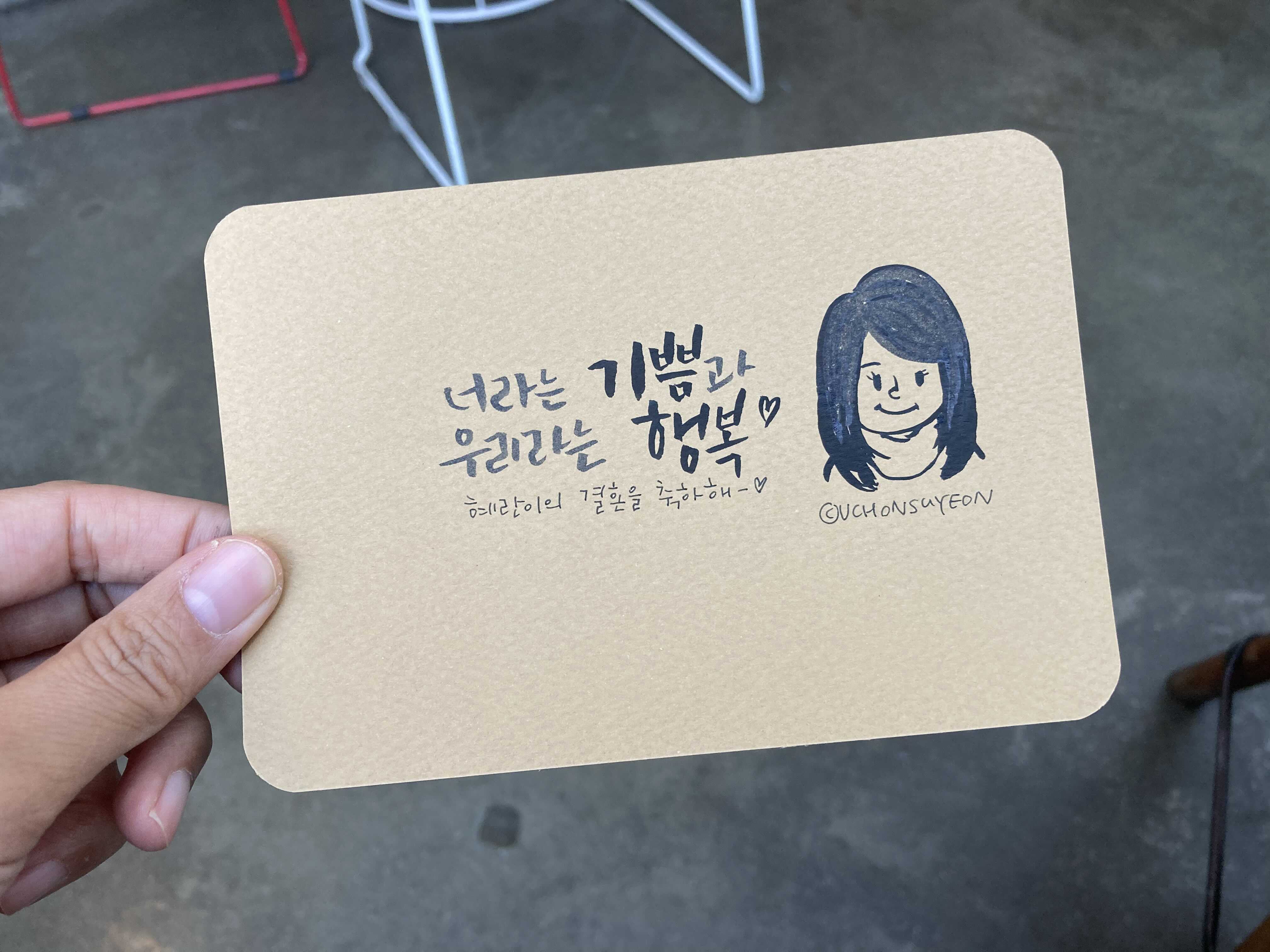 결혼한 지인과 맛점하고 캘리그래피 선물을 했다. 코로나로 사람 만난지 오래라, 오랜만의 선물이였다. 선물은 주는 기쁨도 크지.